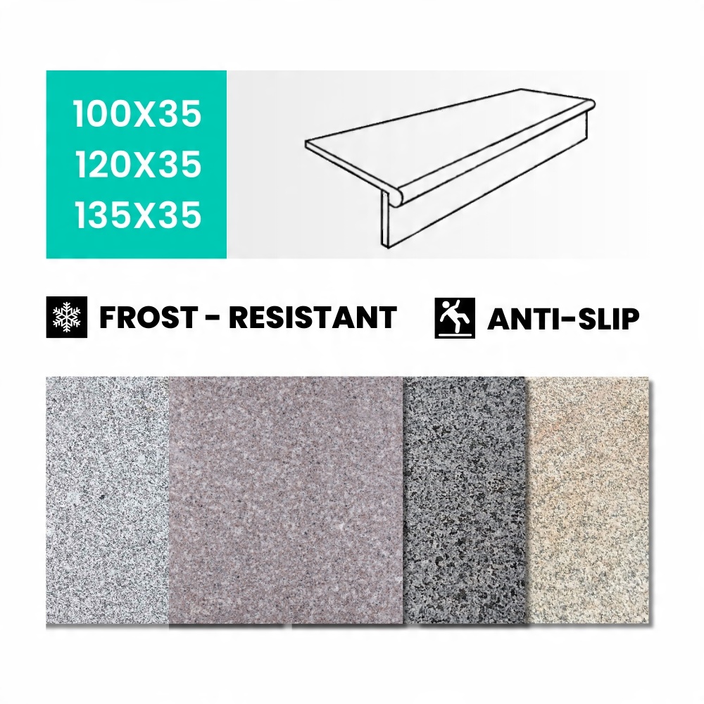 Гранітні сходи Bullnose — це не лише декоративний елемент. Їхня конструкція міцна та міцна, що робить їх стійкими до погодних умов, пошкоджень та стирання. Використання граніту як матеріалу гарантує не тільки естетичний зовнішній вигляд, але й тривалу функціональність.