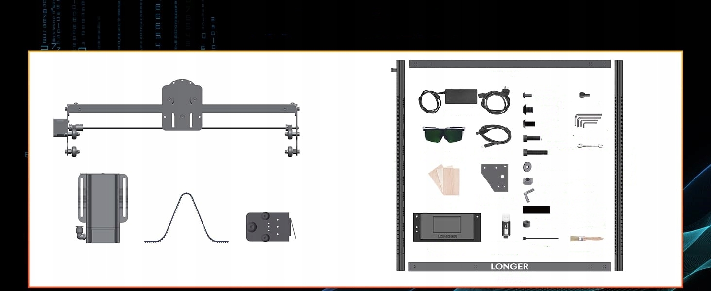 - Чотирьохядерний діодний лазер із вихідною потужністю 22-24 Вт, здатний різати такі матеріали, як сосна товщиною 25 мм, акрил товщиною 35 мм і нержавіюча сталь товщиною 0,05 мм.
