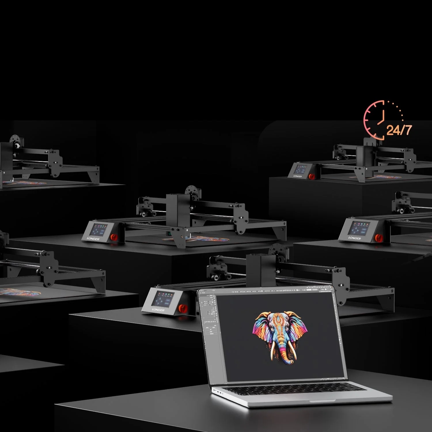 Лазерний гравер LongerRAY5 потужністю 20 000 мВт — це високоточний гравер із 3,5-дюймовим сенсорним екраном і автономним керуванням через додаток. Підходить для різання дерева, металу, акрилу, скла та шкіри. Робоча зона 375 х 375 мм.