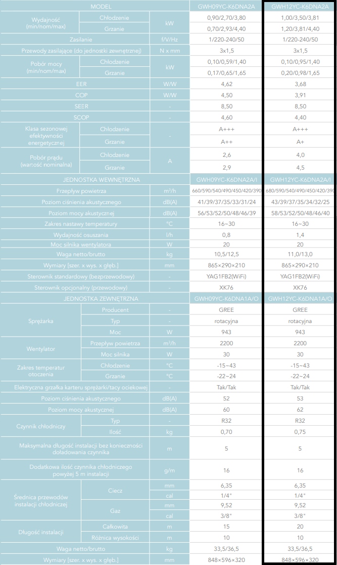 Технічні параметри -gree Amber Black GWH12YC -K6DNA2A/I