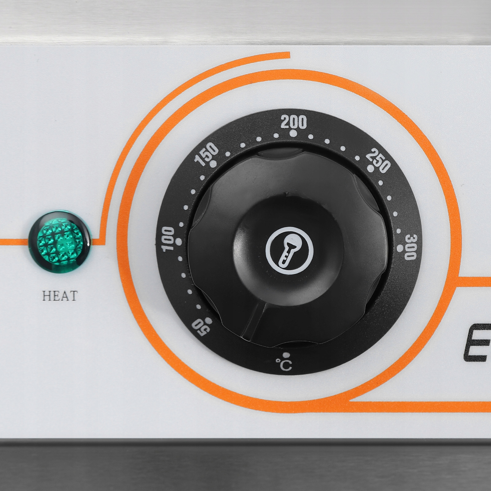 - Висока ефективність: потужність 2500 Вт і високоякісна сковорода-гриль швидко й рівномірно нагрівають їжу та ви можете зручно регулювати температуру (122-572°F), повертаючи поворотну ручку, щоб перетворити інгредієнти на апетитні смаки та забезпечити ефективний процес смаження.
