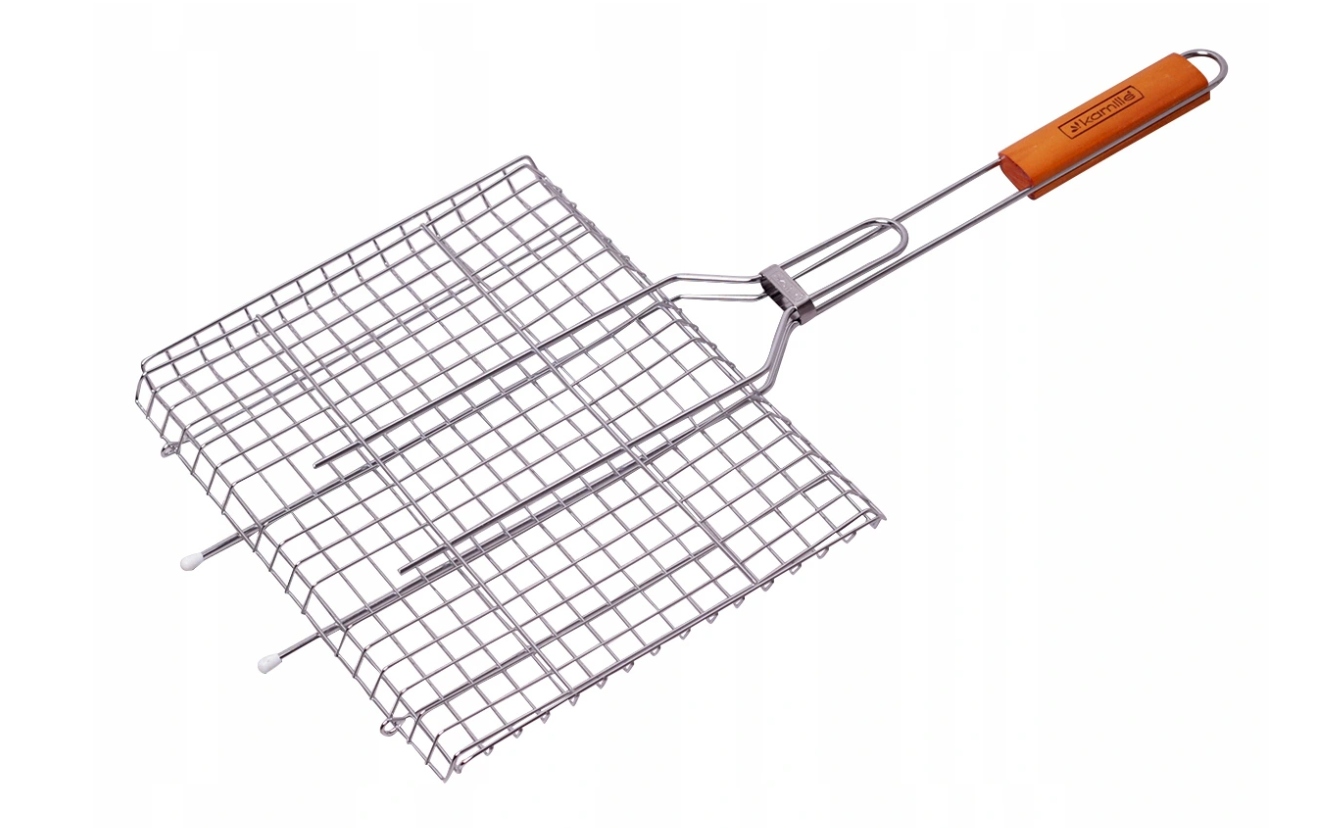 Подвійна решітка з довгою ручкою ідеально підходить для смаження на грилі шматочків м'яса, ніжної риби, сосисок, овочів тощо.