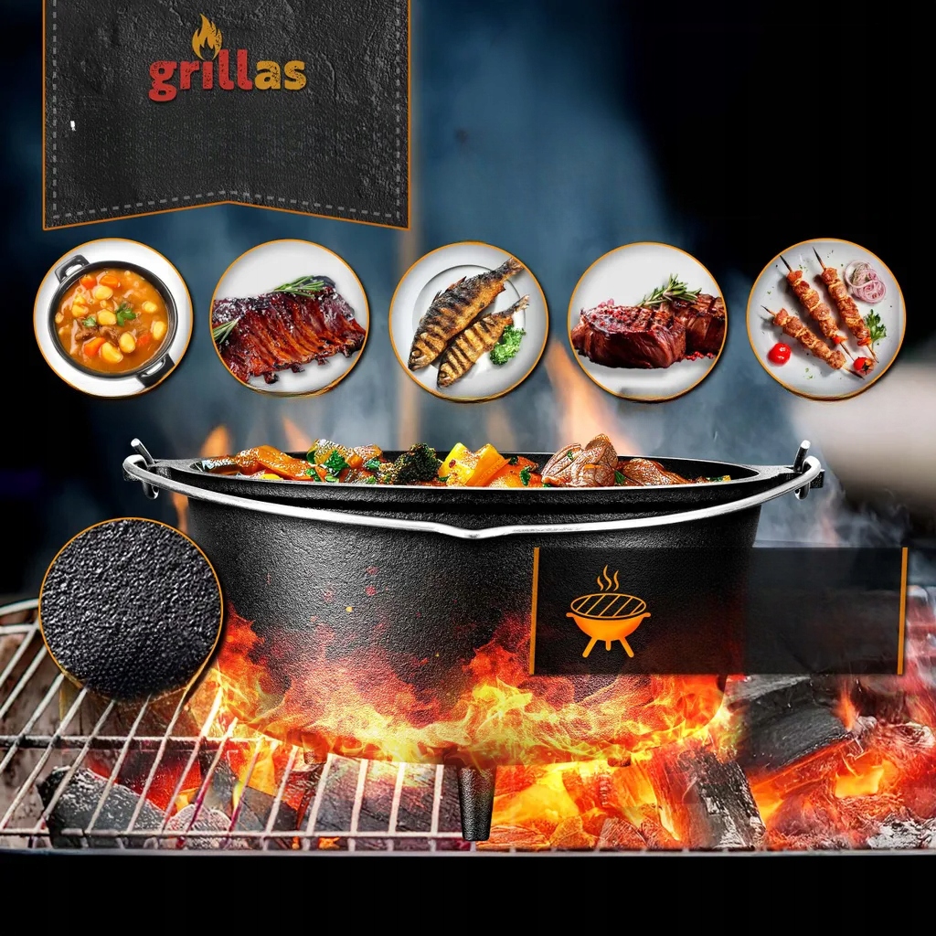 ✅Ефективно та безпечно: завдяки товстим чавунним стінкам тепло рівномірно розподіляється та зберігається в казані. Розміщуючи вугілля, чавун нагрівається. Тому котел працює з верхнім і нижнім нагріванням. Завдяки цьому страви готуються м'яко, без пригорання.