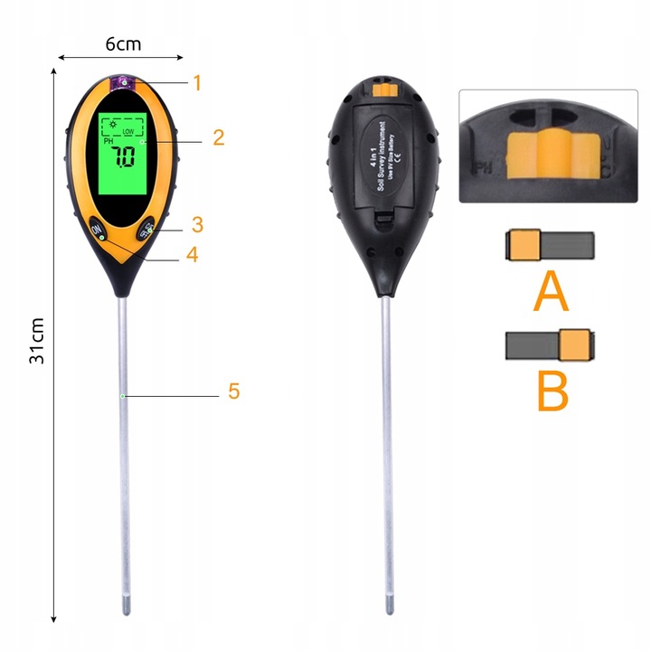 - Вимірювання pH ґрунту: так, шкала від 3,5 до 9