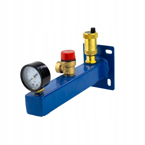 Високоякісні групи безпеки для захисту опалювальних установок від надмірного підвищення тиску, вимірювання тиску та вентиляції установки. Виготовлений зі сталевої балки з порошковим покриттям з різьбленням для розширювального бака. Оснащений запобіжним клапаном з латуні, автоматичним повітровідвідником з хромованої латуні та манометром. Групи безпеки характеризуються якісним виконанням і незмінним маркуванням на корпусах відповідно до європейських стандартів.