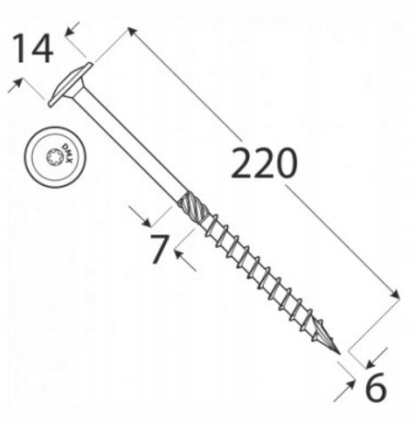 СТОЛЬНІ ШУРУПИ ПО ДЕРЕВИНІ, ПОКРИВАНІ 6x220 TORX