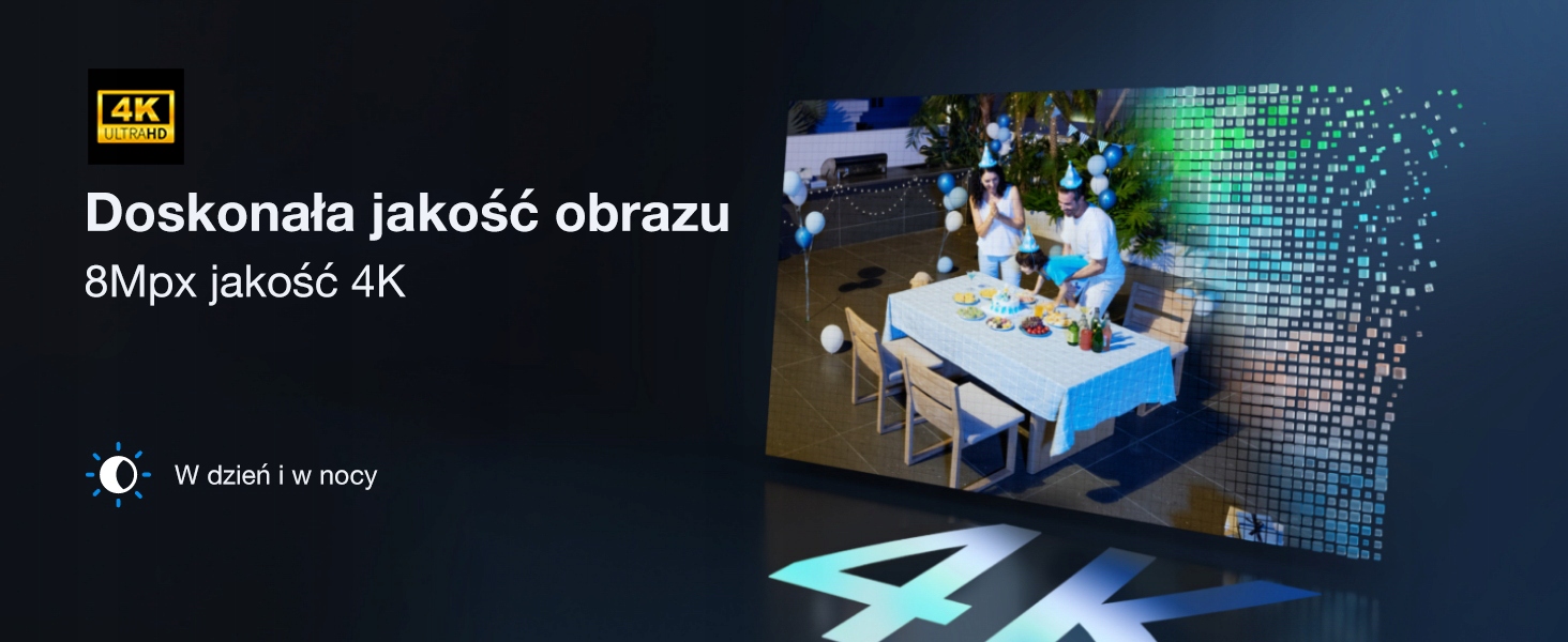 - Чудова якість зображення 4K 3840 x 2160px 8Mpx - перегляд у реальному часі, запис і відтворення в супер роздільній здатності 2K