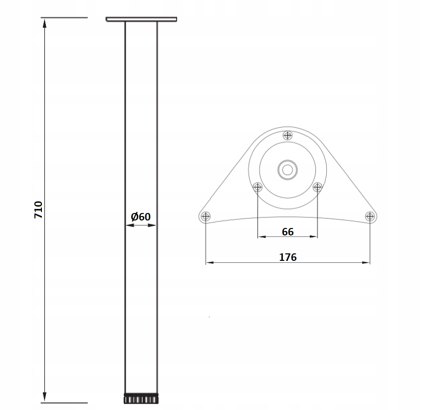 Кругла ніжка є міцною та довговічною основою для меблів, таких як столи чи письмові столи. Ніжка регулюється по висоті, тому ви можете точно вирівняти меблі.