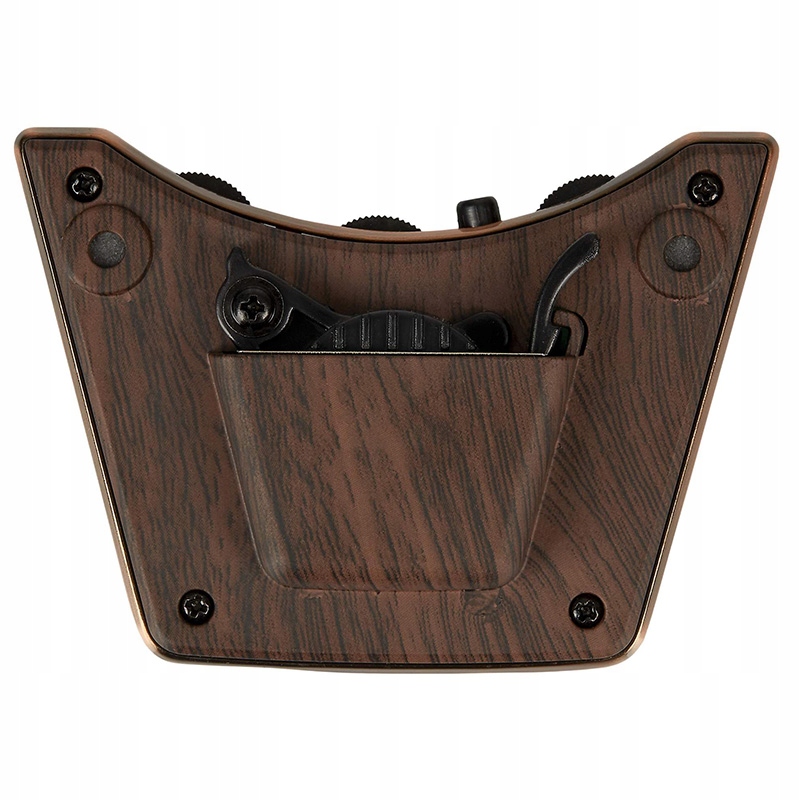 корпус із цинкового сплаву прикрашений текстурою горіхового дерева. Завдяки низькому енергоспоживанню час автономної роботи становить до 40 годин безперервної роботи. У комплект входять чотири батарейки CR2032 та інструкція з експлуатації.
