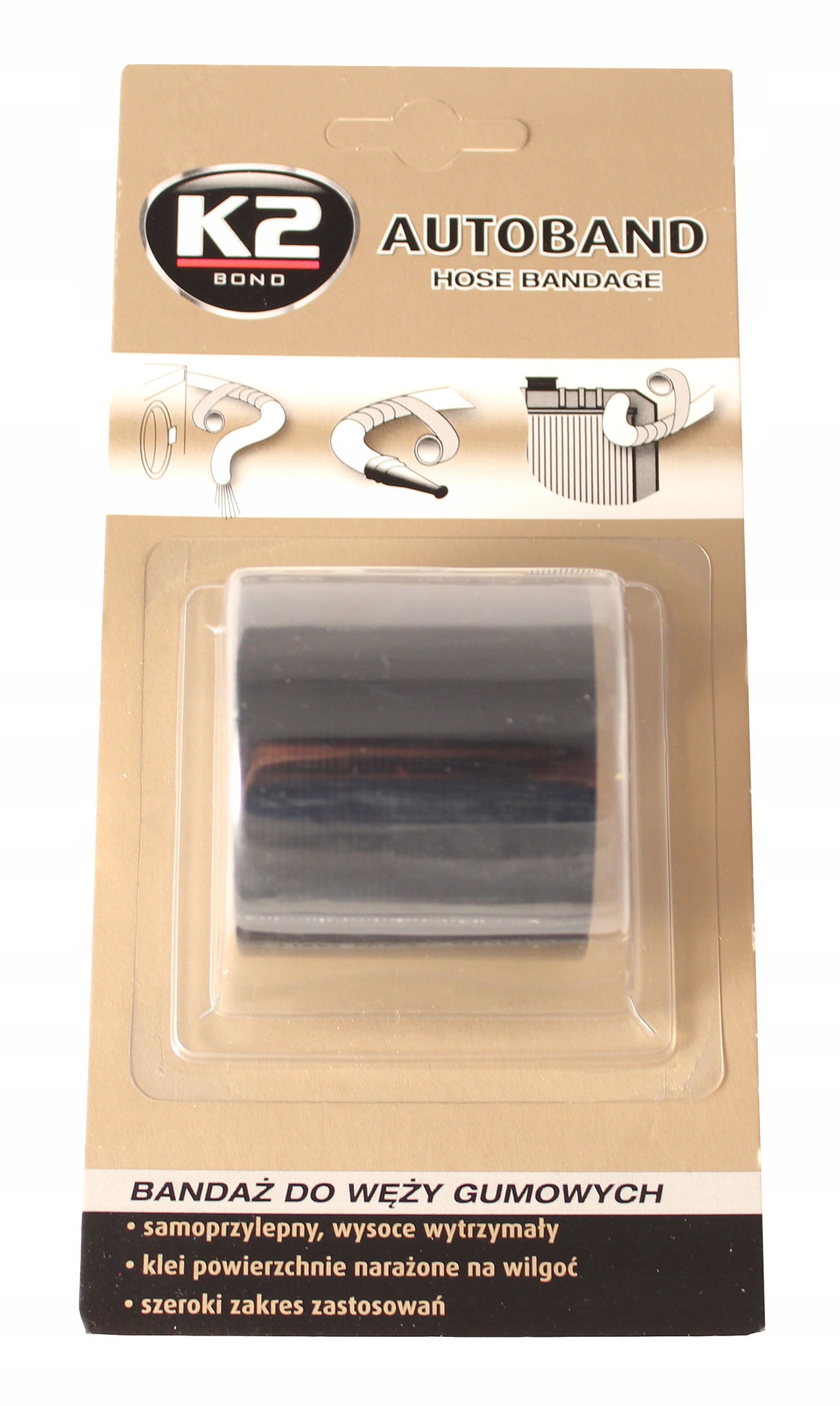 K2 AUTOBAND використовується для ремонту шлангів холодильного агента в автомобілях, садових шлангів, шлангів для ванних кімнат і всіх інших гумових шлангів в побуті та автомобілі. AUTOBAND також можна використовувати для ізоляції резервуарів для води, труб опалення та багатьох інших застосувань.