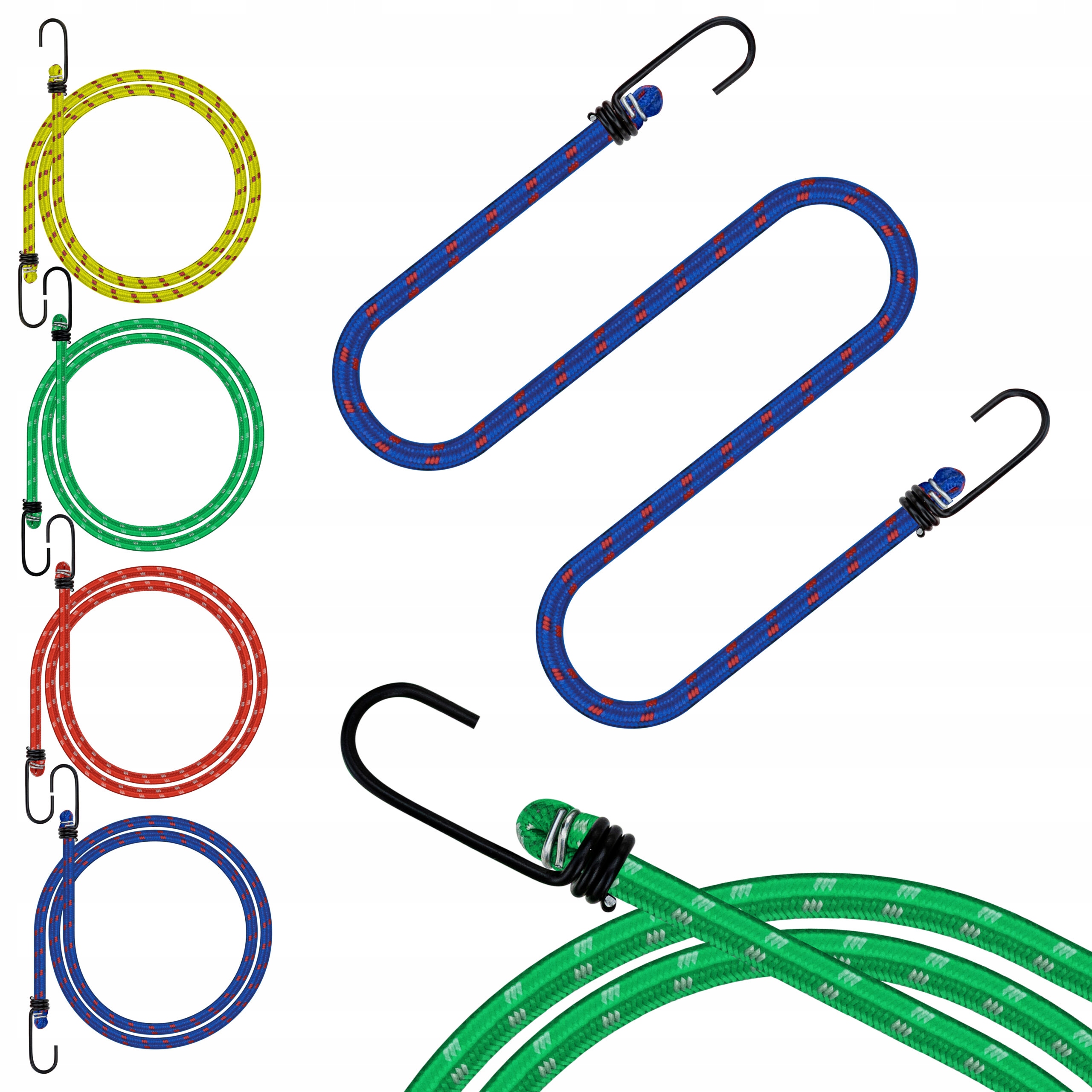 Гумові еластичні , Тому вони можуть адаптуватися до форми та розміру обійми. Оздоблені металевими гачками, завдяки яким їх можна кріпити до різних поверхонь, наприклад, ременів, металевих частин, багажників, дахів. Кожна гумка без розтяжки 110 см. Вони характеризуються високою гнучкістю та довговічністю.