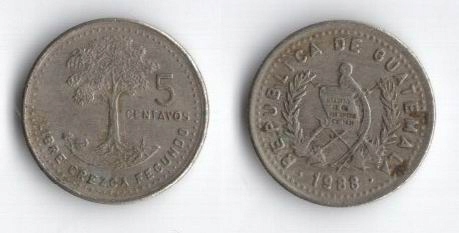 ГВАТЕМАЛА 1988 5 CENTAVOS