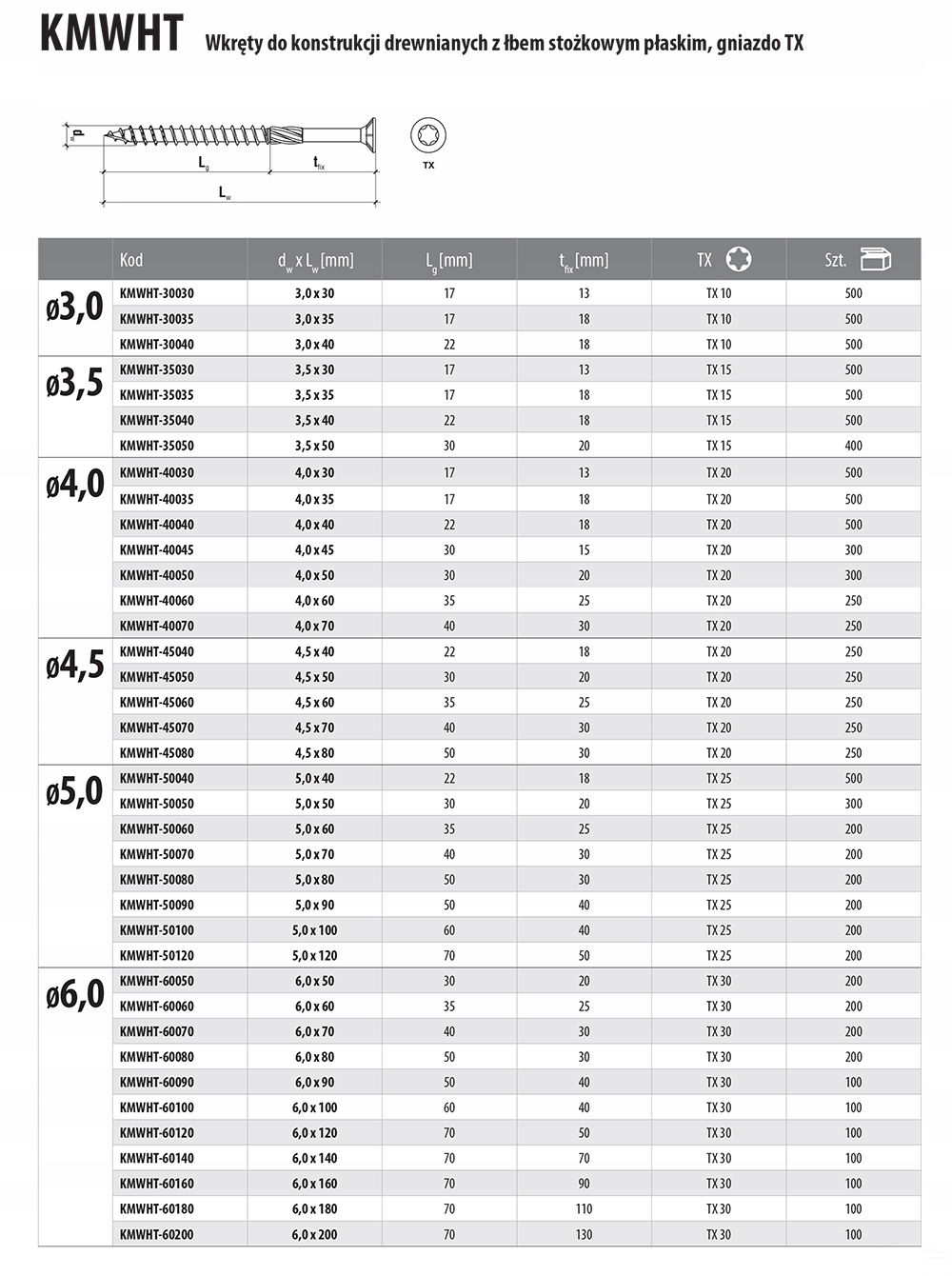 - Гвинти виготовлені відповідно до вимог стандарту PN-EN 14592:2008+A1:2012, що підтверджено Декларацією про характеристики
