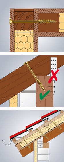 - Кріплення крокв. Навіть сильно деформовані крокви можна затягнути за допомогою шурупів з пластинчастою головкою