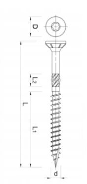СТОЛЯРНІ Гвинти WCS 4x40 TORX, КОНІЧНА ГОЛОВКА, 250 шт.