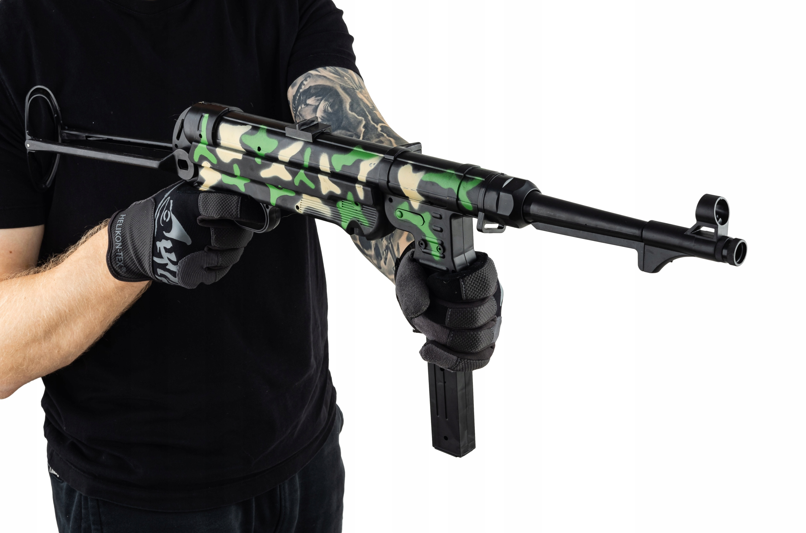 Кулемет на базі гвинтівки MP 40 (Schmeisser), призначений для виконання спеціальних завдань. Ця гвинтівка в стилі мілітарі не тільки чудово виглядаєале й має довговічність і надійність, які необхідні в будь-якій ситуації. Якщо ви шукаєте надійну гвинтівку для розваг чи тренувань, цевідмінний вибір.