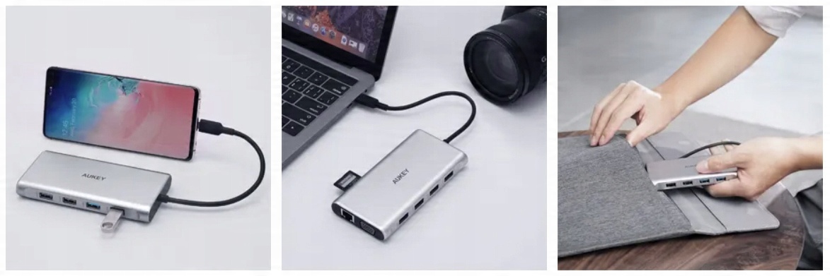 AUKEY CB-C89 Ультрасучасний, компактний, алюмінієвий концентратор USB-C PD 10-в-1