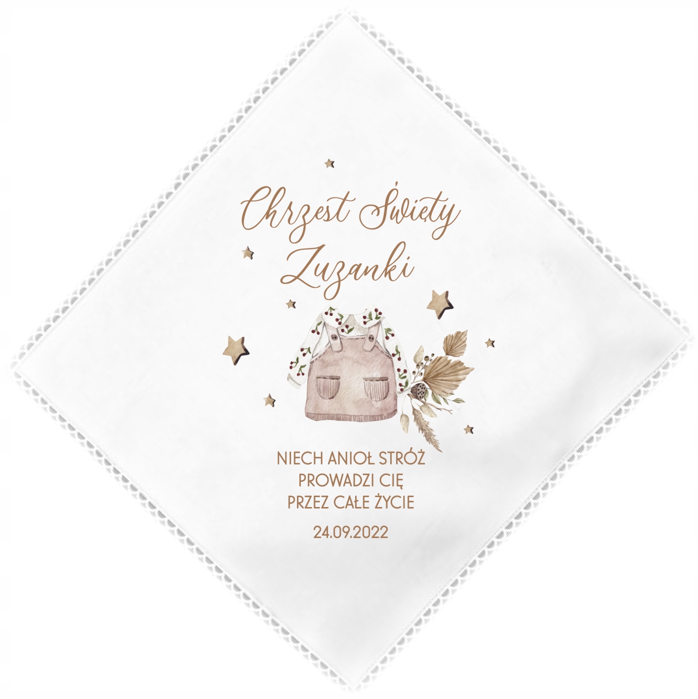 Хлат для ХРЕЩЕННЯ з принтом ІМ'Я + ДАТА в стилі бохо