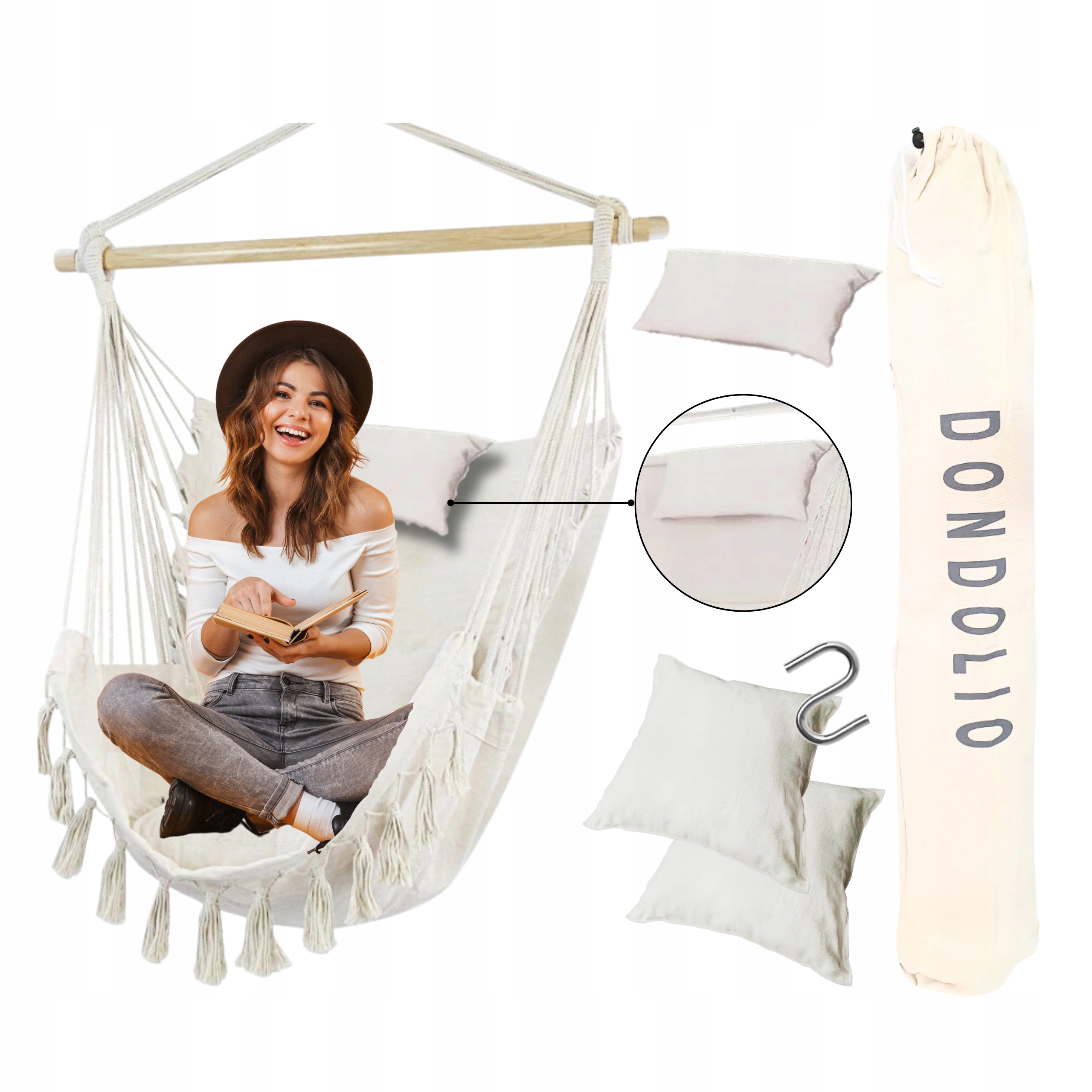 Hamak Huśtawka Fotel Wiszący Brazylijski Ogrodowy Bujany + 3 poduszki 150kg