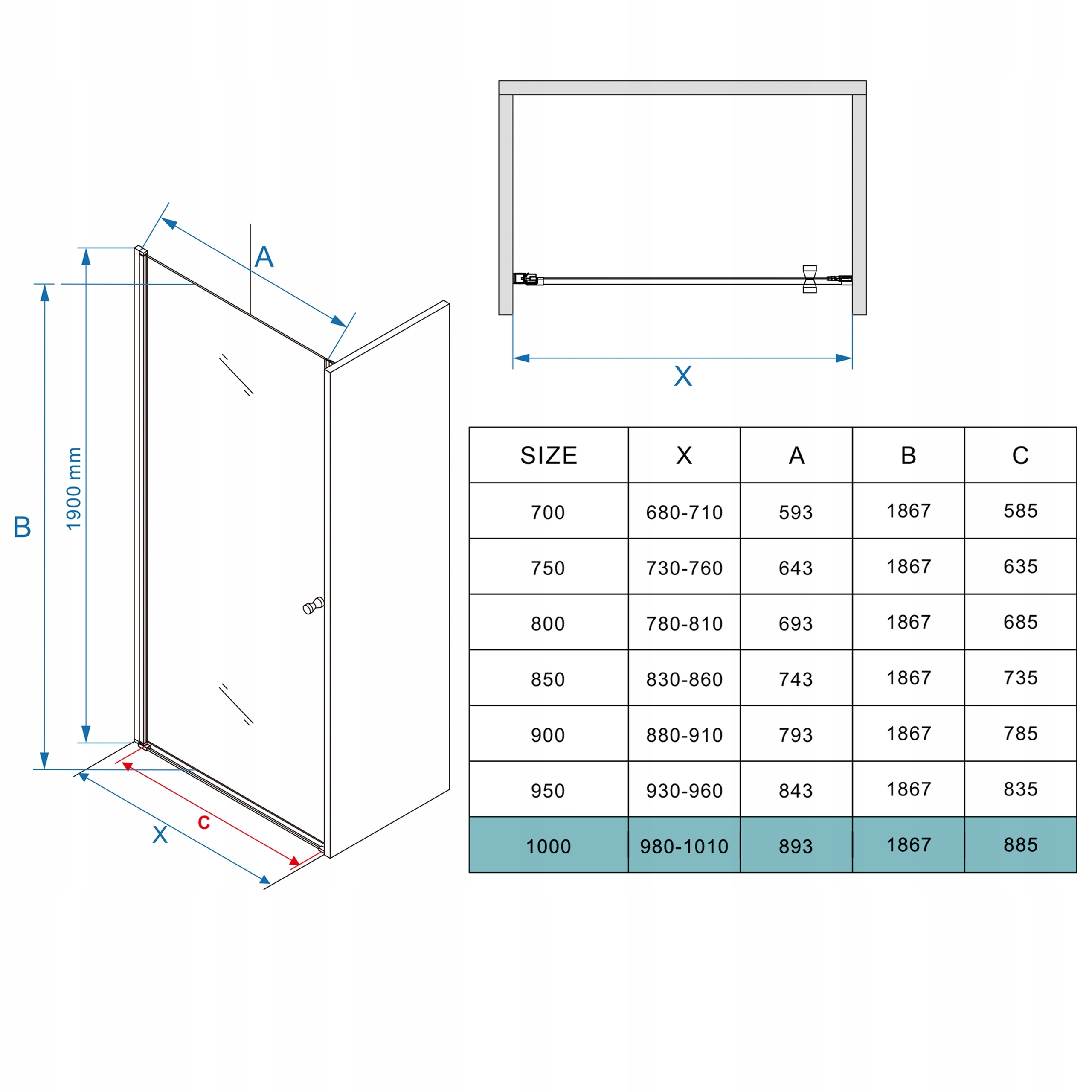 ПОХИЛНІ ДУШОВІ ДВЕРІ ДЛЯ RICH 100CM CHROME