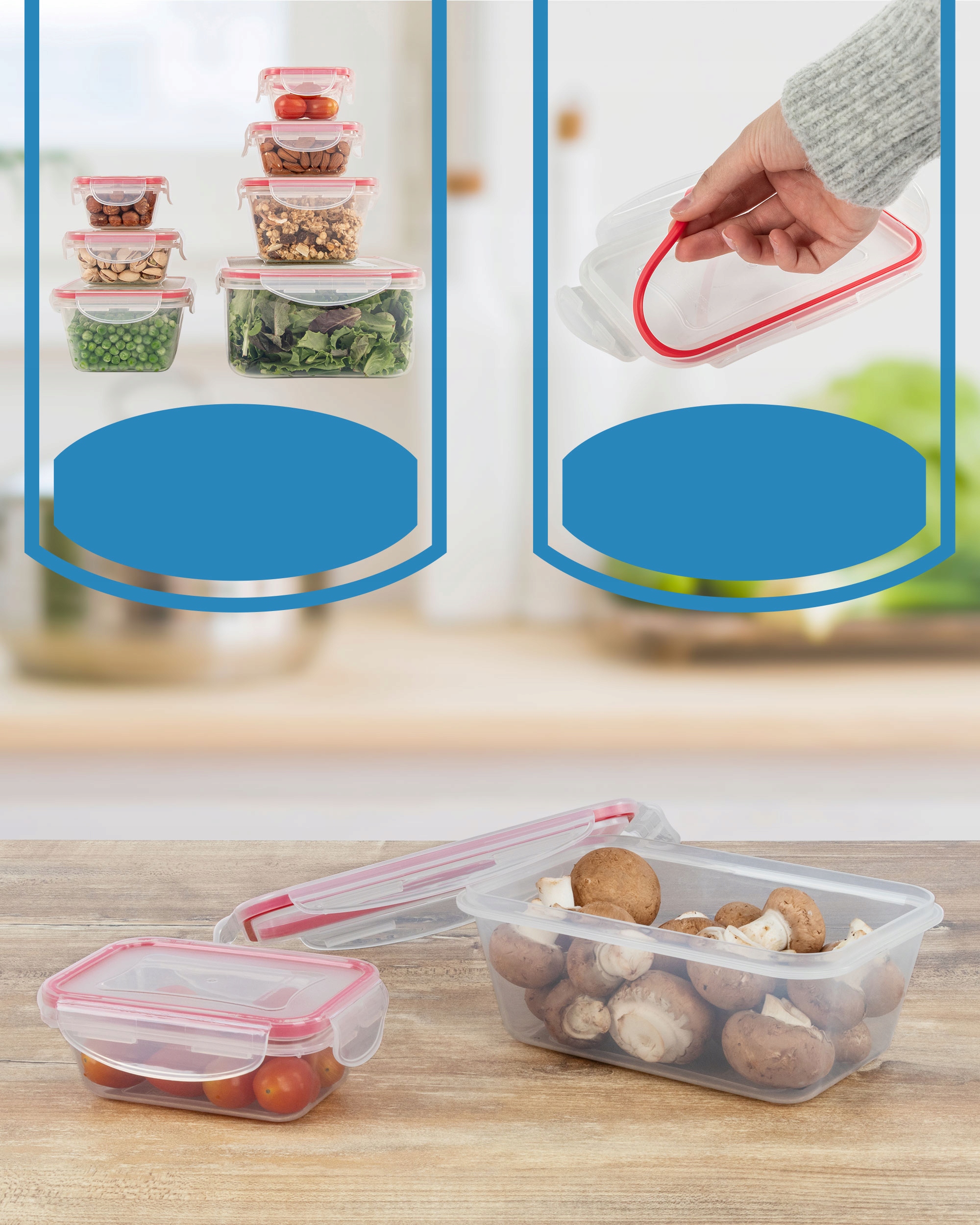 7 контейнерів різного розміри та місткість, призначені для зберігання продуктів із герметичною кришкою - ідеально підходить для зберігання продуктів, як інгредієнтів, так і цілого посуду