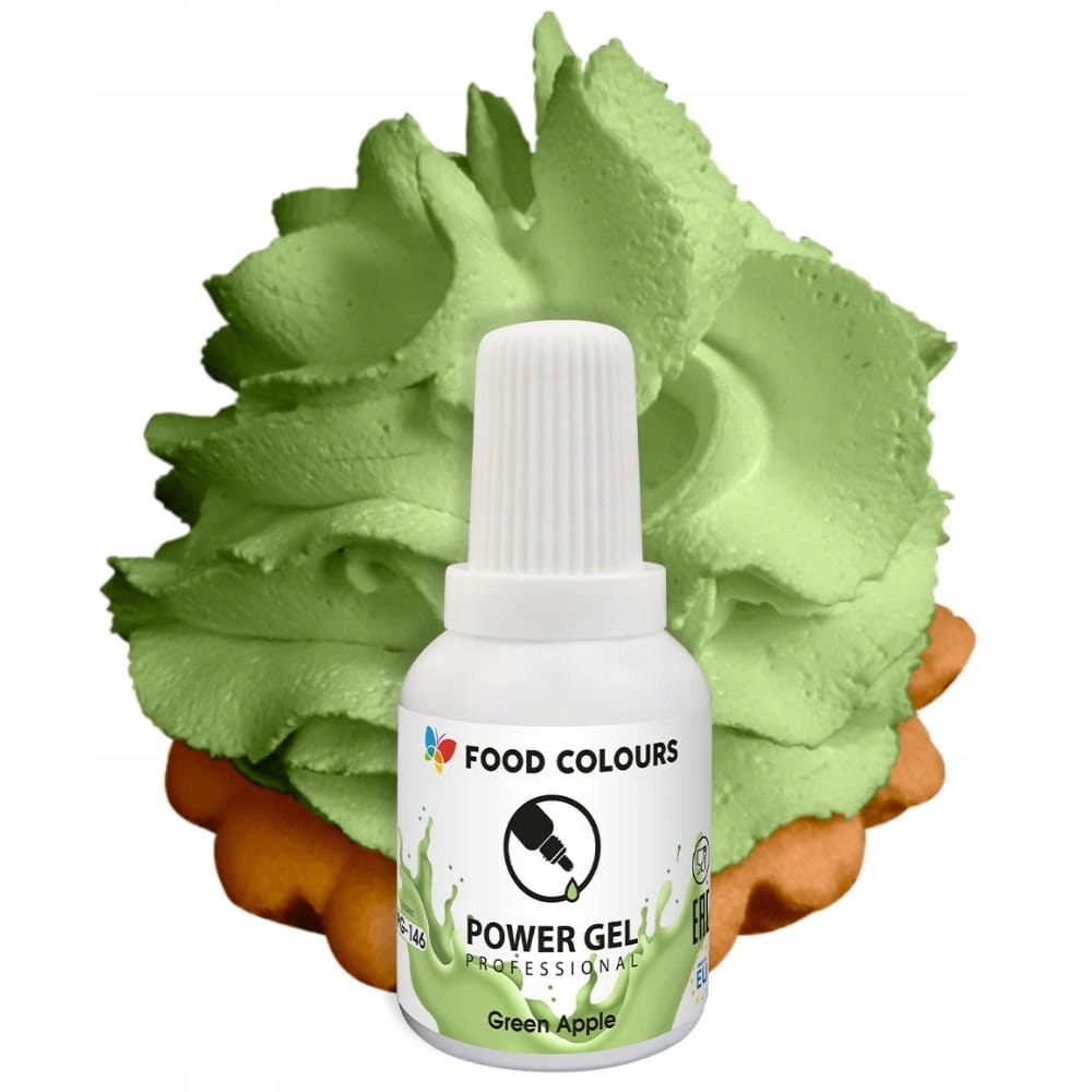Гелевий харчовий барвник, зелене яблуко. Відтінок Green Apple - світло-зелений колір яблук. Барвник упакований в практичний флакон зі зручною крапельницею, що полегшує точне дозування. Флакон має надійну закривачку, тому барвник не висихає і не виливається. Просто додайте барвник до цукрової маси або вершків і як слід перемішайте або розімніть. Завдяки низькому вмісту води легко вкладається в кондитерські маси. Не рекомендується використовувати з жировими масами. Висока концентрація барвника робить його дуже ефективним. Ідеально підходить для випікання тортів, мафінів, морозива, а також для прикраси тортів та інших солодощів.