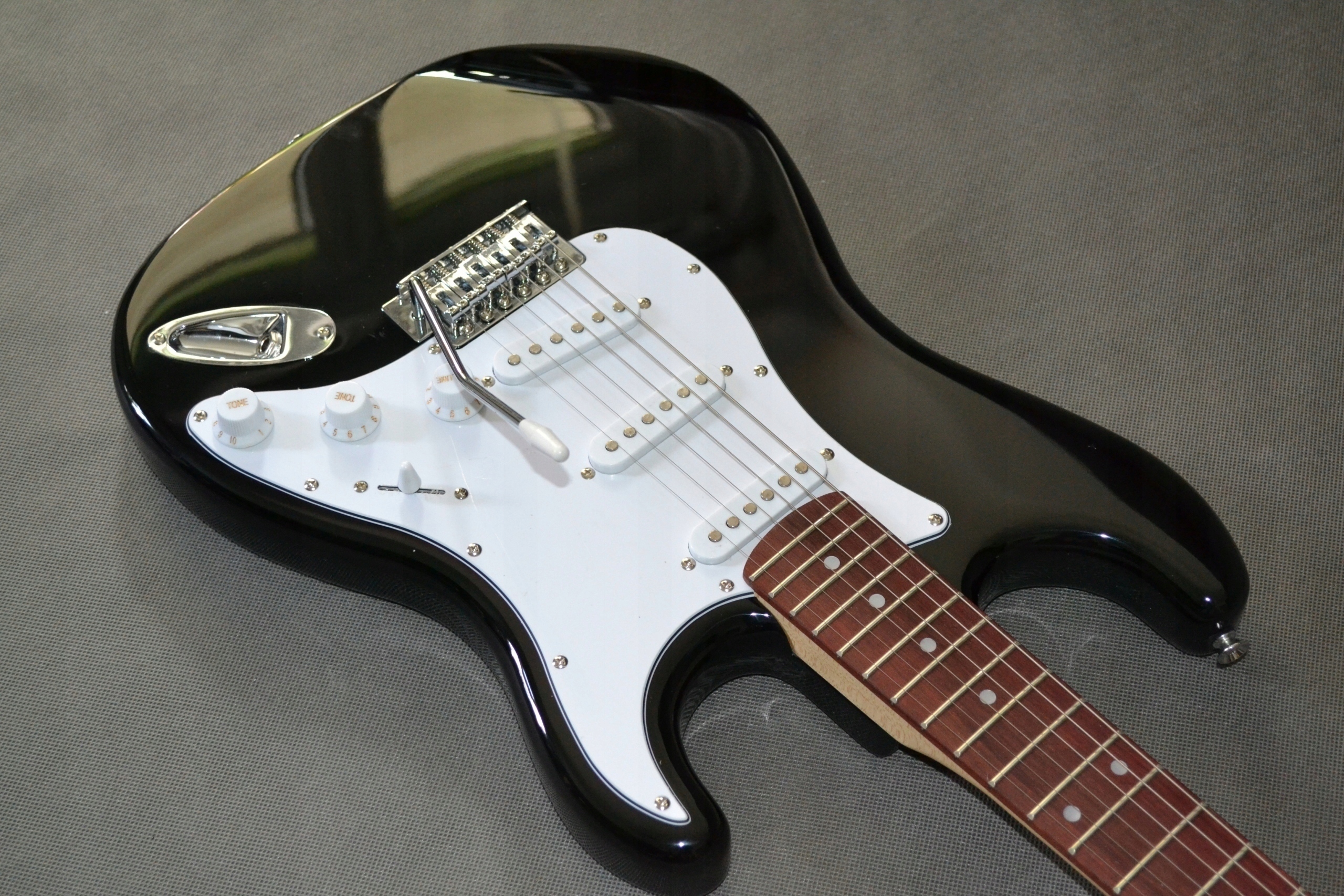 - Електроніка ST-Style single coil звукознімачі, 5-позиційний перемикач, 1 потенціометр гучності та 2 потенціометра тембру. li>Колір: чорний (глянцевий чорний).
