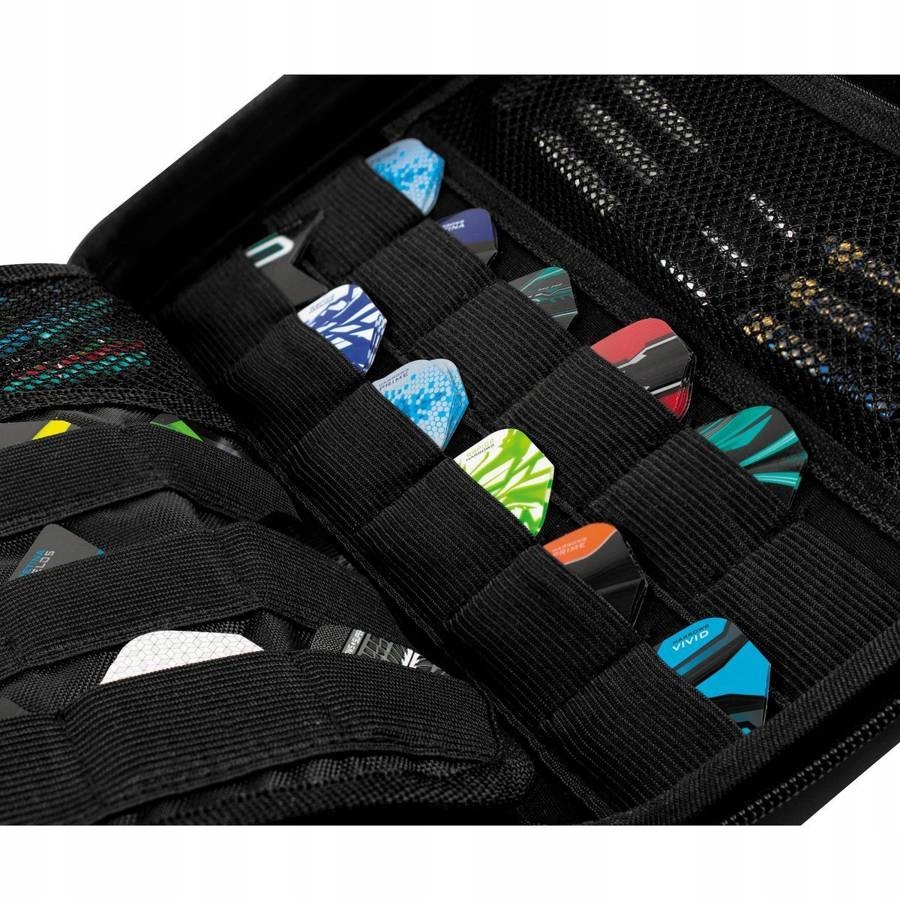утримує до 12 повністю зібраних дартс і багато наборів пір’я та інших добавок.