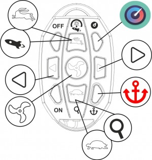 Після багатьох пропозицій виробник нарешті додав кнопку якоря у пульт дистанційного керування, тепер управління ще простіше! Він доступний в основному обладнанні. Він може бути встановлений, напр. На зап'ясті або стрижні, завдяки якому ми маємо вільні руки. Двигун обертається при 360о.