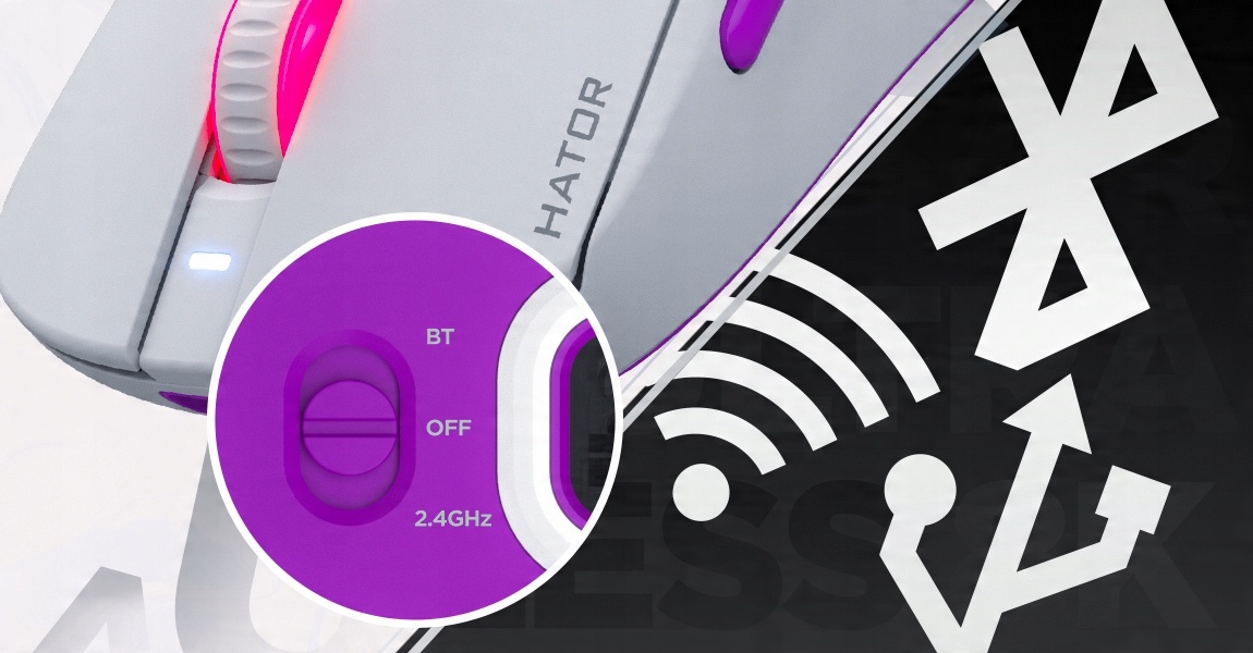 Миша пропонує три режими з'єднання, а це означає, що вона може бути адаптована до різних ситуацій та переваг користувача. Бездротовий режим 2,4 ГГц гарантує стабільне з'єднання та мінімальні затримки, що необхідно під час інтенсивної конкуренції. Можливість підключення за допомогою Bluetooth дозволяє забезпечити більшу гнучкість та зручне використання різних пристроїв. У свою чергу, провідний режим через порт USB забезпечує повну надійність і без затримки, що особливо важливо в іграх, що потребують ідеальної синхронізації рухів.