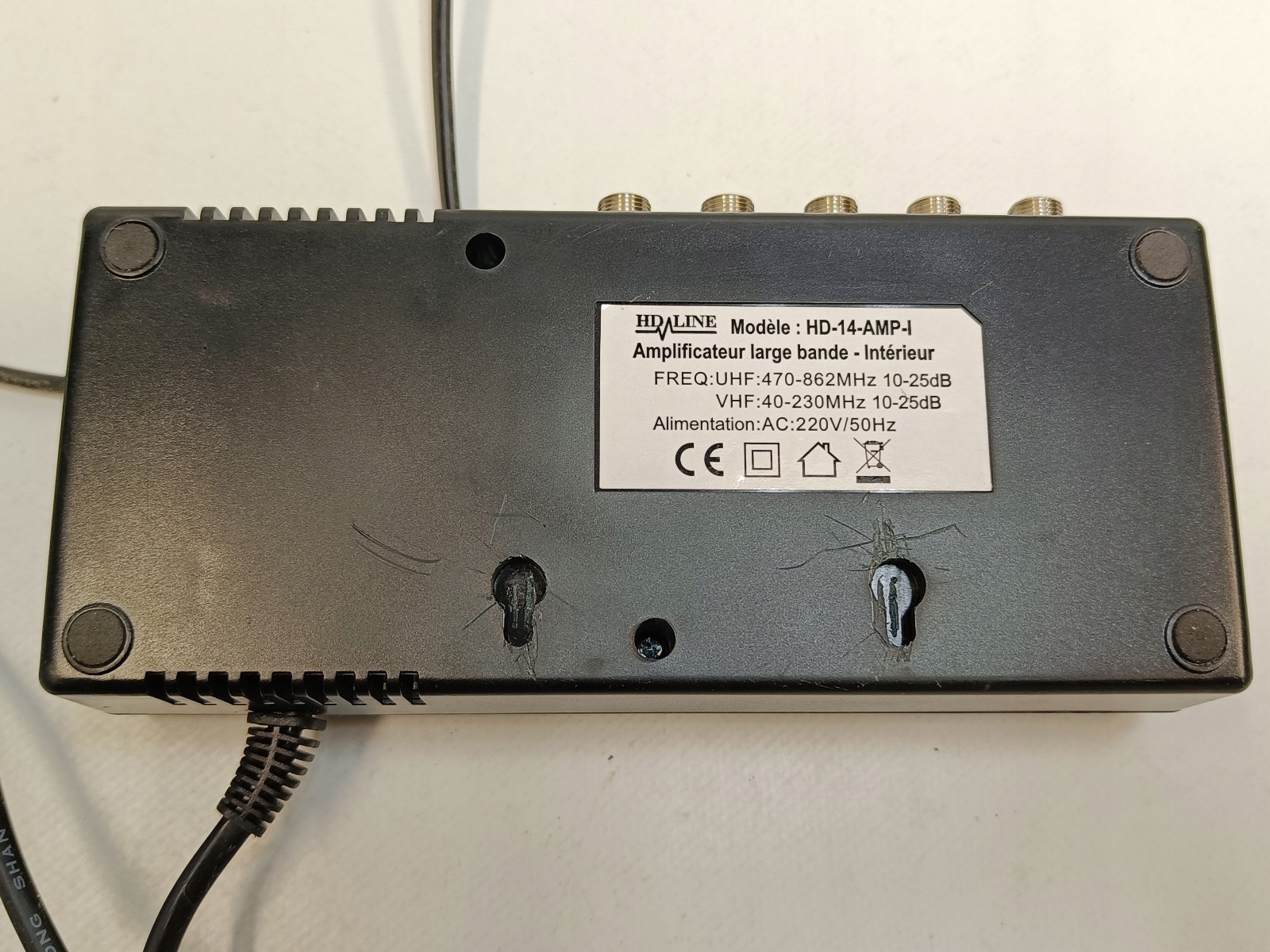 використовується для зміцнення та розподілу Tnt HD HD UHF на 4 TVS - посилене посилення до 27 дБ на кожному виході - якість зображення регулюється при вводі (усуває ефекти мозаїки або пікселізації) і регулює потужність