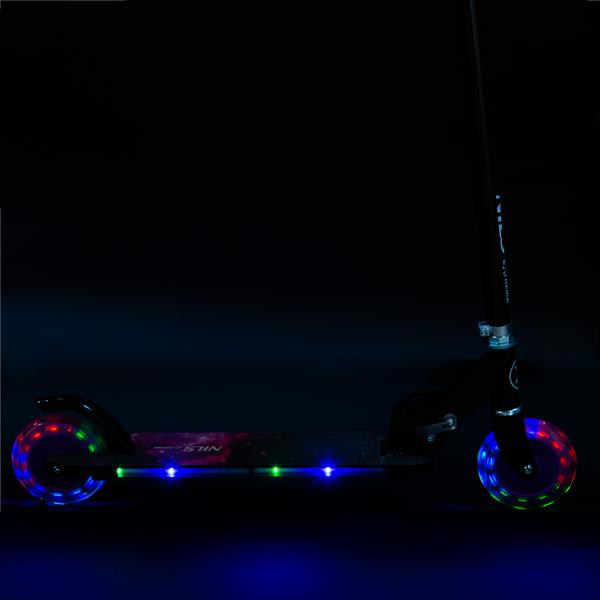 HD025 Nils Extreme — це самокат, призначений для дітей і підлітків. Його безперечною перевагою є сучасний дизайн, чудові ходові властивості та світяться колеса з платформою! Він ідеально підходить для розважального катання на асфальті, бетонних поверхнях і асфальтованих тротуарах.