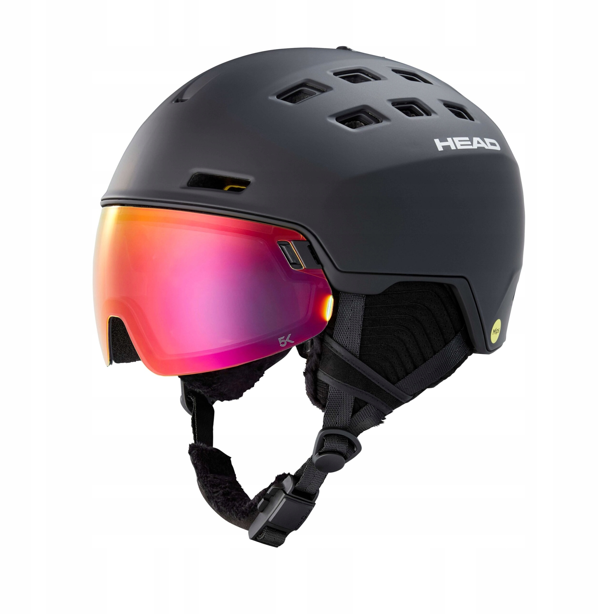 Гірськолижний шолом Head RADAR 5K MIPS із вбудованим подвійним сферичним склом, що забезпечує кращу видимість, є відзначеною нагородами моделлю. Сферичне скло має фіксовану вертикальну і горизонтальну кривизну, що забезпечує відмінне поле зору, що допомагає швидко реагувати на небезпечні ситуації. Завдяки своїм властивостям технологія 5K дозволяє більше світла досягати очей у похмурі дні, а коли світить сонце, вона блокує ультрафіолетові промені та не дозволяє їм потрапляти в очі. Внутрішня шапка, ідеально прилягає до голови, виконана з м'якого мікрофлісу. Він запобігає тиску з боку оболонки шолома та запобігає проникненню холоду всередину. Крім того, кепка забезпечує відмінну теплову вентиляцію. Пряжка Fidlock - це просте рішення для легкого та зручного відкриття однією рукою. Завдання системи MIPS, яка є додатковим шаром, інтегрованим у шолом, полягає в обмеженні обертального руху, що передається в мозок під час ударів. Розробники доклали всіх зусиль, щоб забезпечити вам найвищий рівень безпеки.