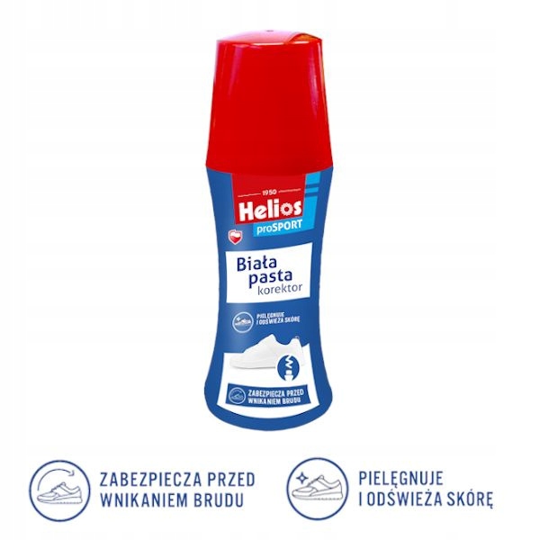 Рідка паста Helios White живить і освіжає шкіру в спортивному взутті, покриваючи подряпини, дрібні потертості та подряпини на поверхні. Коректор ефективно захищає поверхню взуття від забруднень, а значить, Ваше взуття довше залишатиметься чистим і охайним. Паста оснащена круглою губкою, якою можна дістатися до всіх закутків на поверхні взуття. Якщо у вашому гардеробі є білі кросівки або кеди, спробуйте цю білу пасту і довше насолоджуйтесь білизною та естетичним виглядом свого взуття!