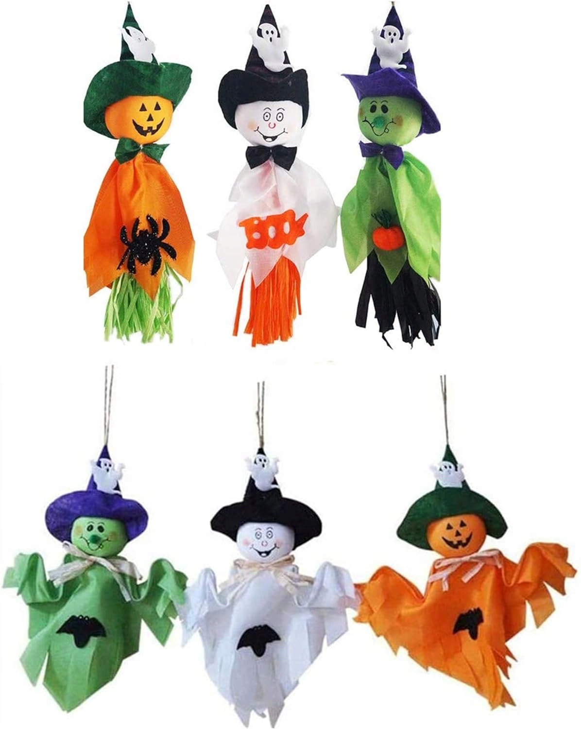 - 6 різних дизайнів: Лялька-опудало ми пропонуємо три кольори упаковки для цього декору-привида: помаранчевий, білий і зелений, це створить більш реалістичну атмосферу Хелловіна. Розмір ляльки: довжина: 35 см; ширина: 18 см; довжина шнурка: 10 см.