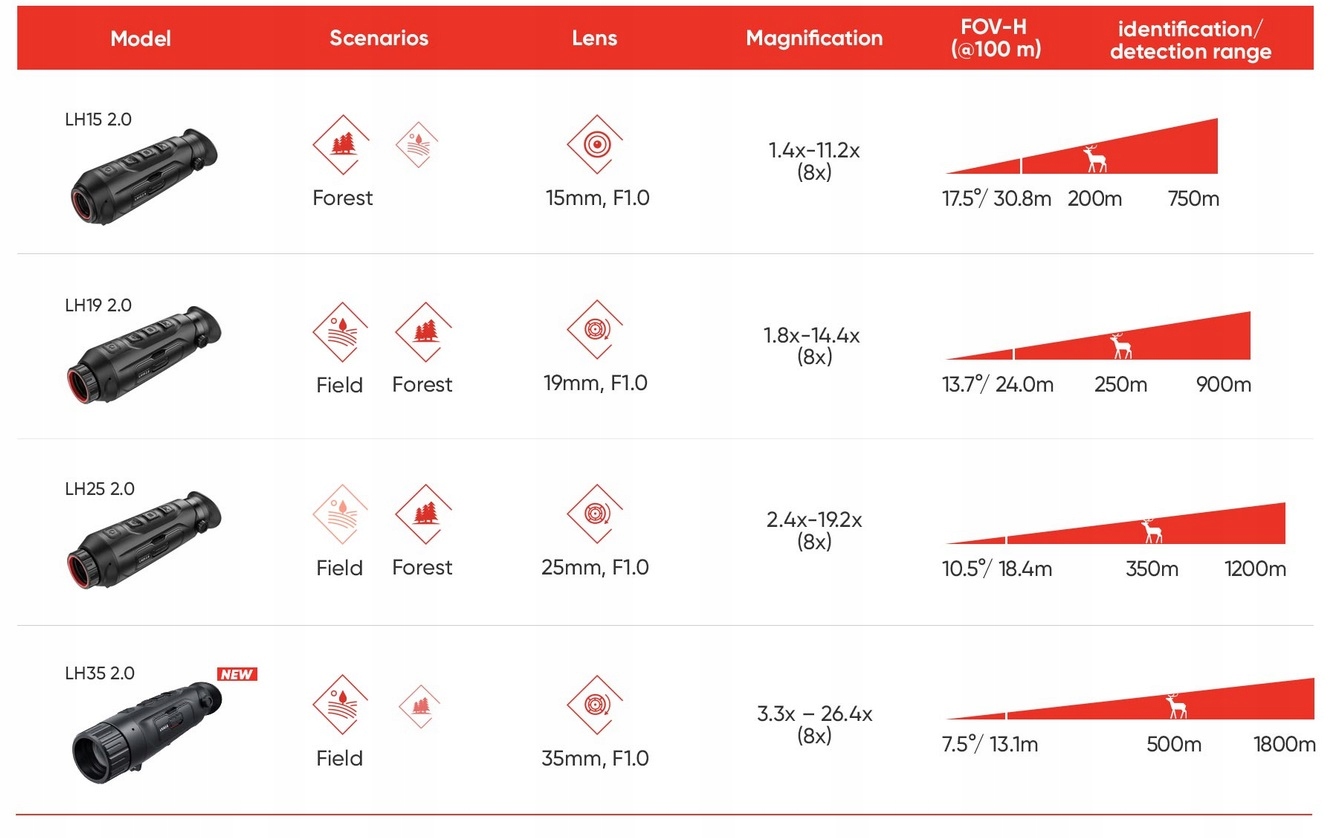 Hikmicro Lynx 2.0 LH35 Теплова камера зображення - функції: 2> - Виявлення до 1,800 допускає до 20 -кратних метрів. Зображення з точною термічною диференціацією.