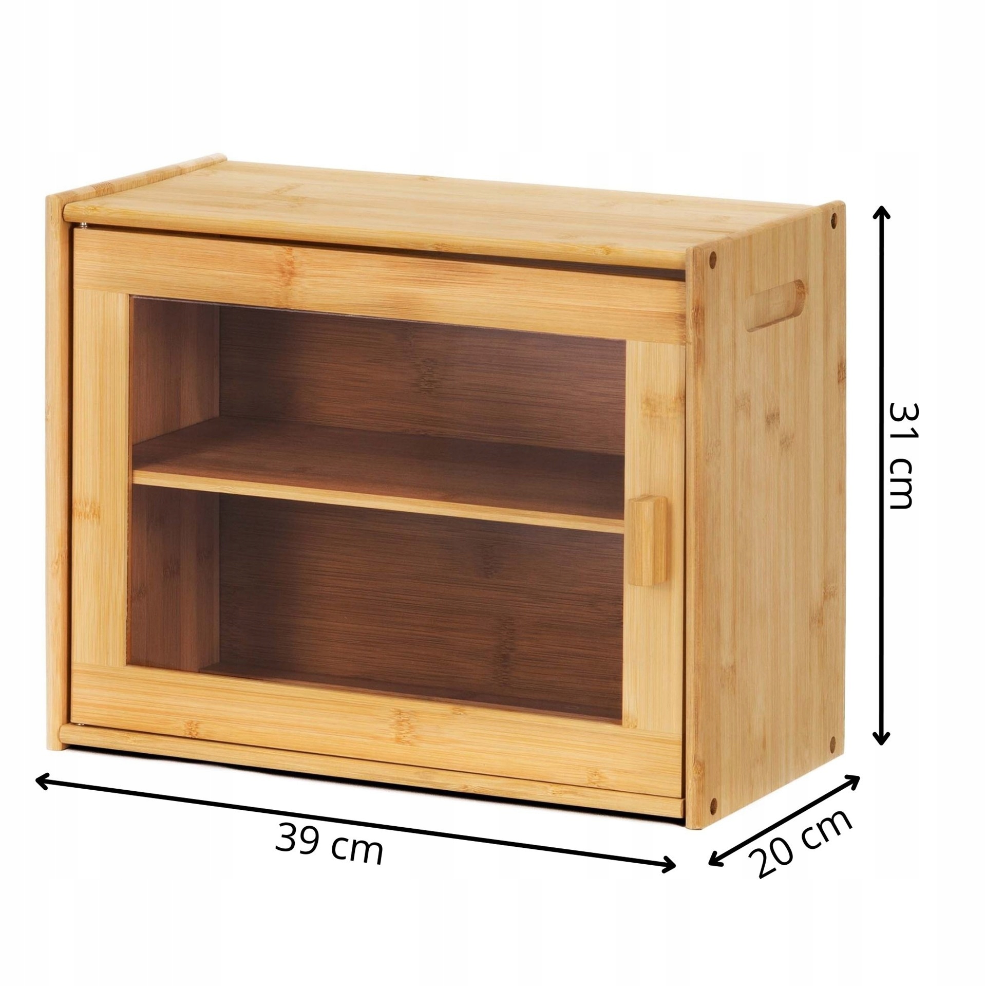 Конструкція з натурального бамбука надає їй приємний, теплий характер. Її міцність робить її стійкою до щоденного використання. Прозоре вікно в дверцятах – це деталь, яка підкреслює стиль усієї хлібниці.