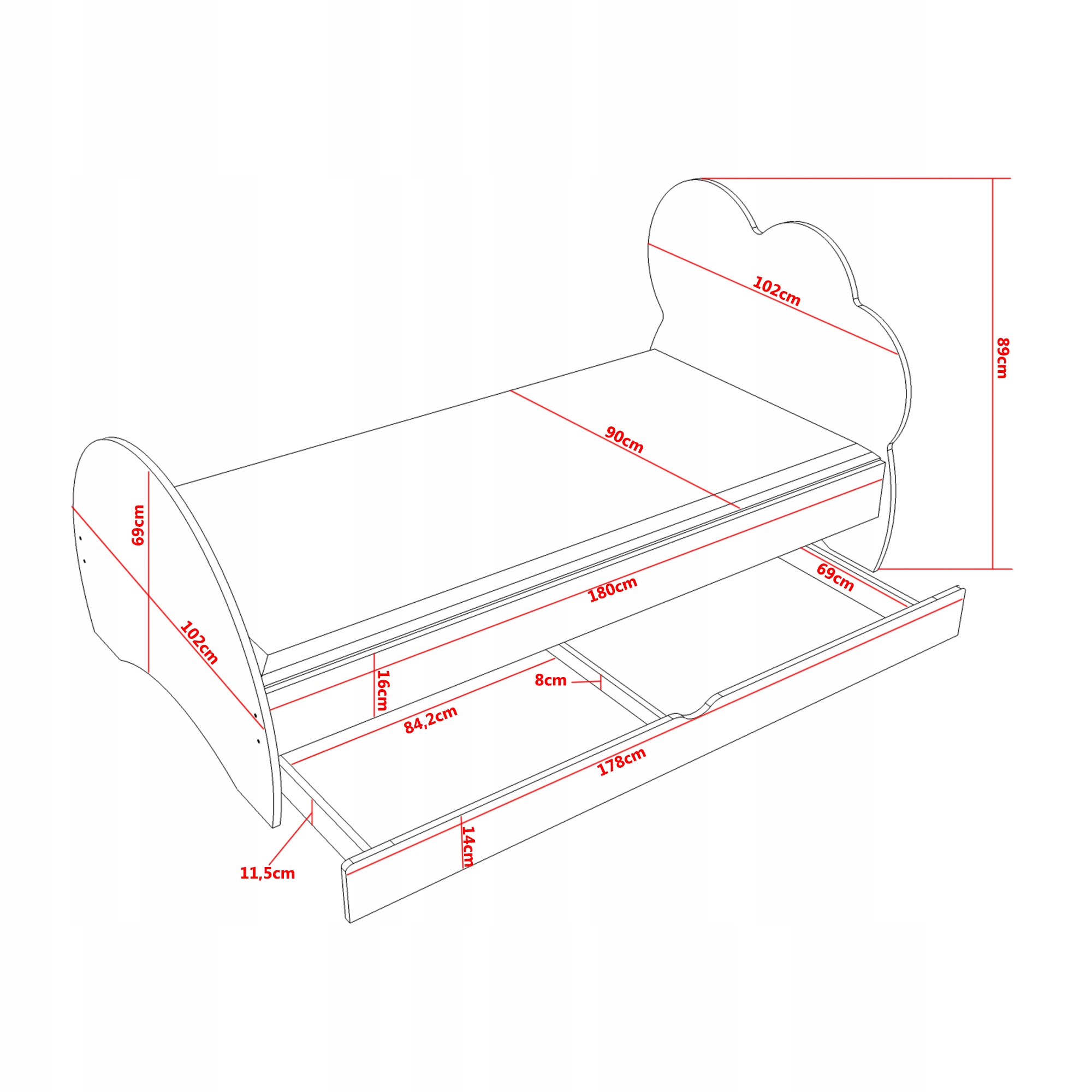- Cloud bed - sleeping surface: 180 cm x 90 cm , total dimension: 184 cm x 102 cm x 89 cm
