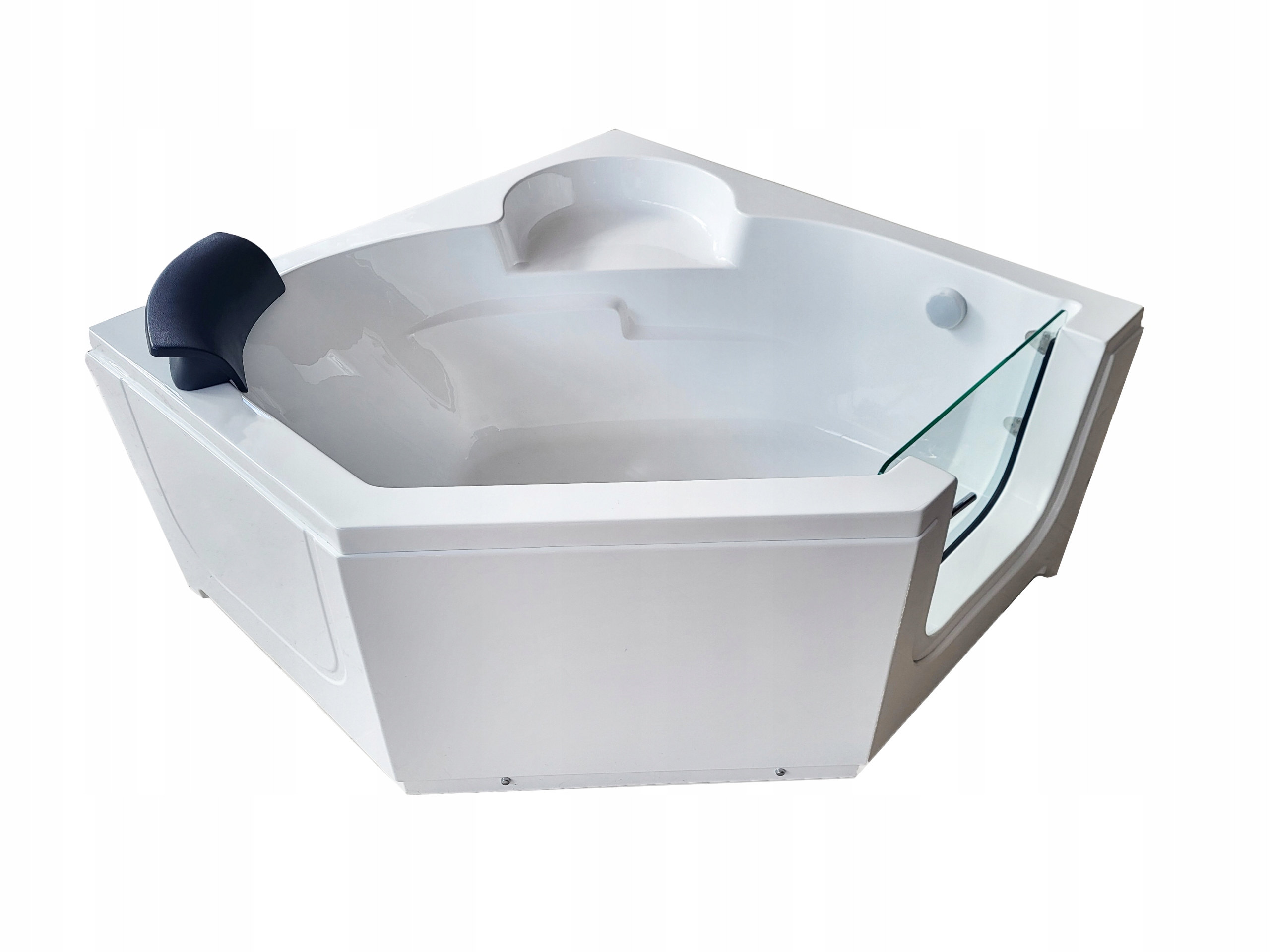 Кутова ванна відкрилася з дверима та житло в розмірі 135x135x65 см - розроблена для людей з обмеженнями моторних, інвалідів та людей похилого віку.