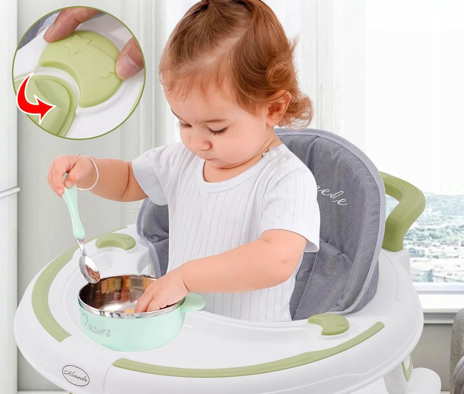 - 【змінна та зручна】 Чарівна ходунка -стиль, оснащений музикою, кнопками і диски до іграшок, щоб перехитрити, обертати та обертати, кидають виклик та покращують рухові та сенсорні навички дитини в барвистому світі гри та навчає мислення та координацію руки дитини. Знімний лоток для гри перетворює ходунку на стілець їдальні для дітей. Безпечний матеріал PP робить коляску легкою і легкою в очищенні