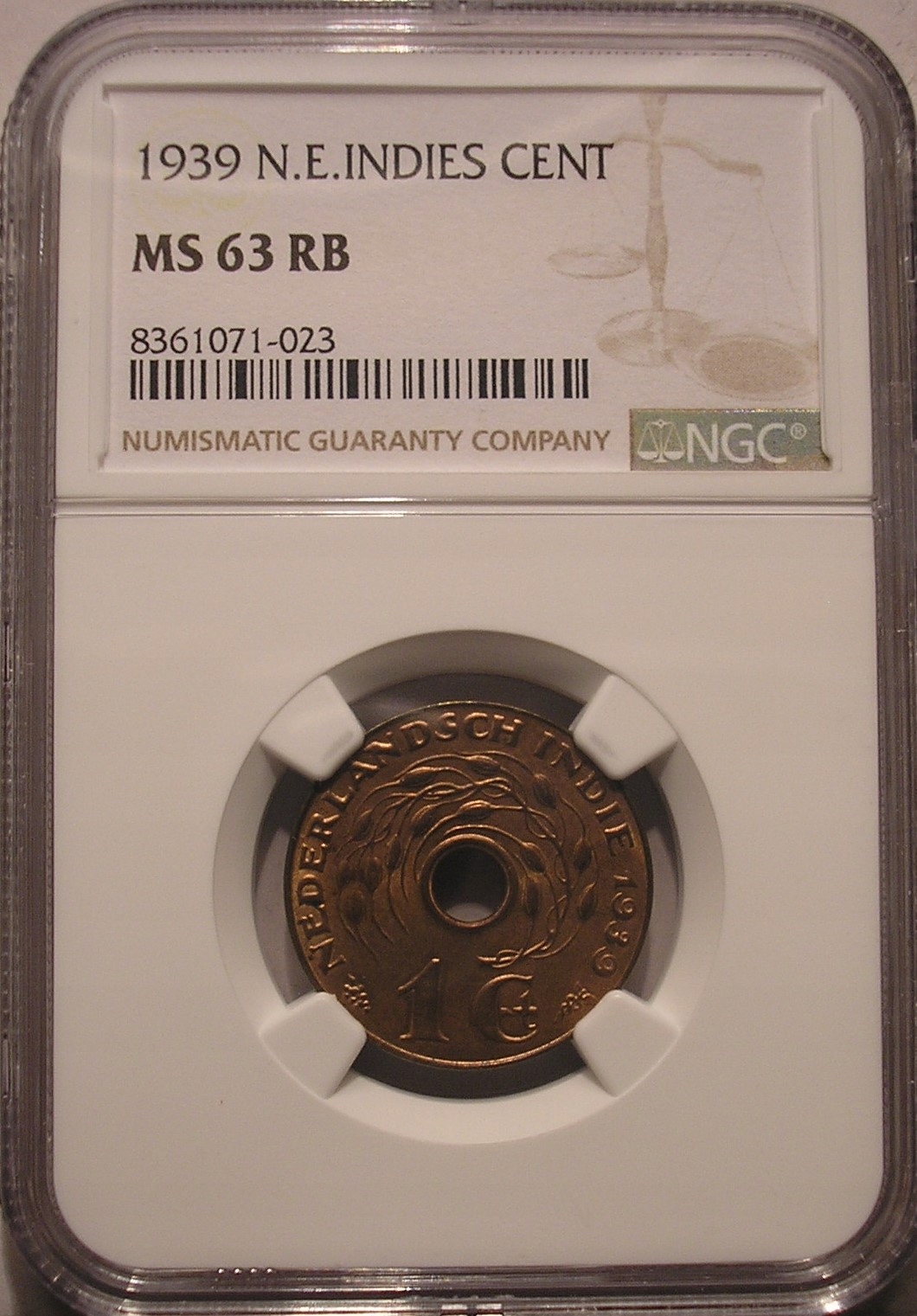 HOLENDERSKIE INDIE WSCHODNIE - 1 cent 1939 MS 63 RB NGC