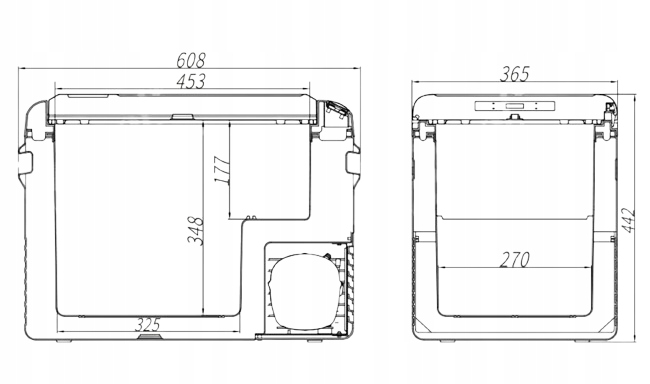 - Холодильник має джерело живлення 12/24 В із вилкою до більш легкої розетки та 230 В джерела живлення. Завдяки цьому його можна використовувати як на дорозі, так і в готелі