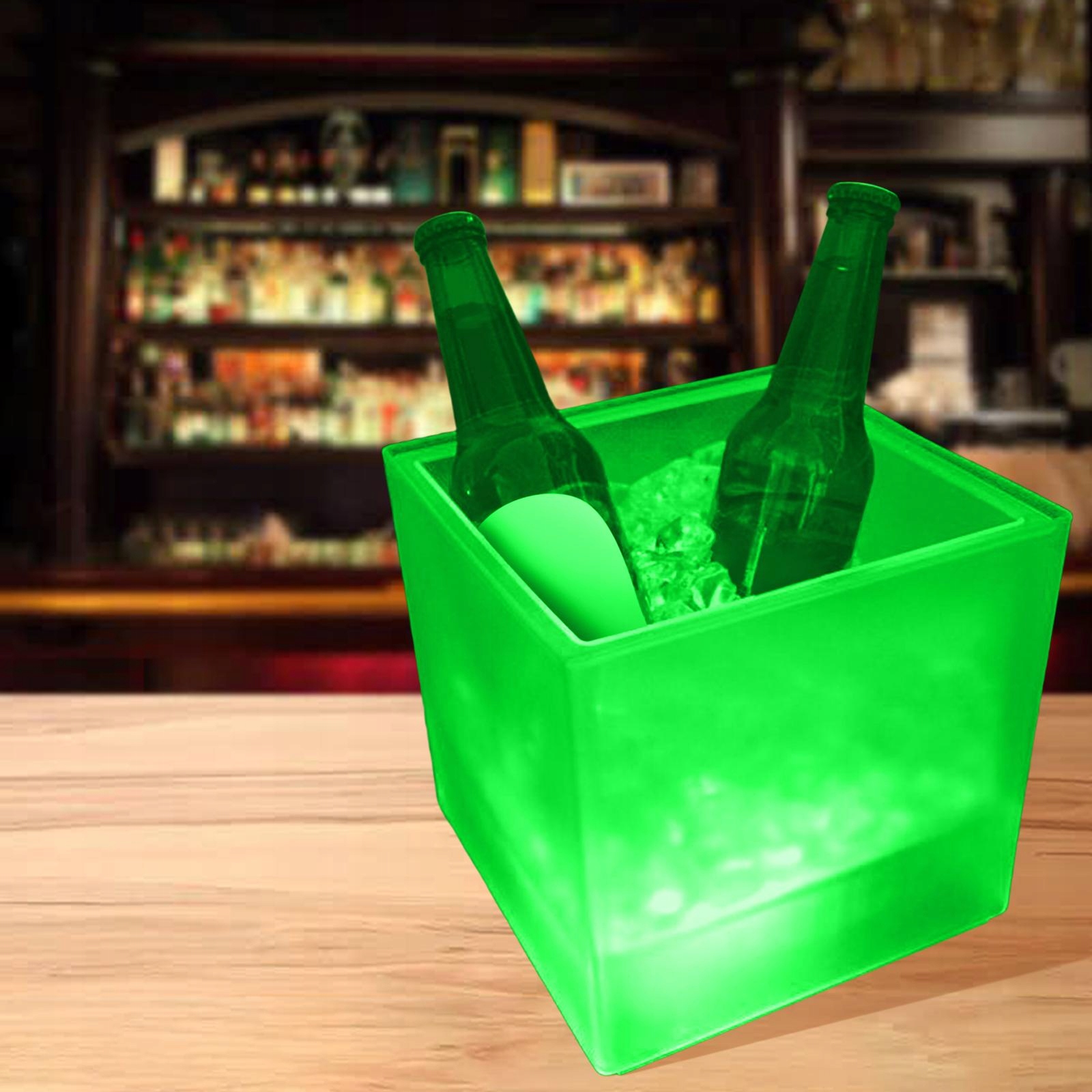 Яскраве світлодіодне відерце для льоду: зелене світлодіодне освітлення, сучасний дизайн, крутий зовнішній вигляд, активна атмосфера.
