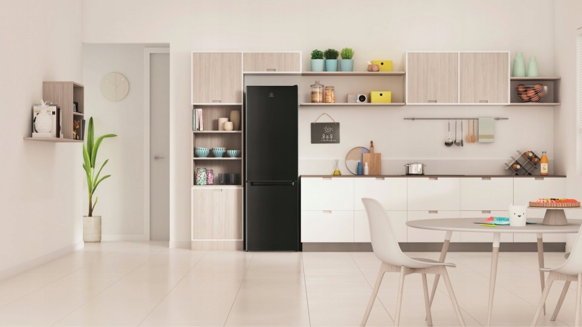Особливості окремо стоячого холодильника з морозильною камерою Indesit: високий пристрій, що задовольняє потреби всієї родини. Колір: чорний. Скляні полиці забезпечують довговічність і елегантність. Практична полиця для безпечного зберігання пляшок.