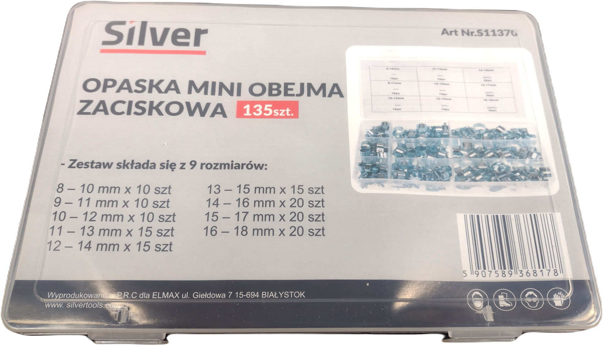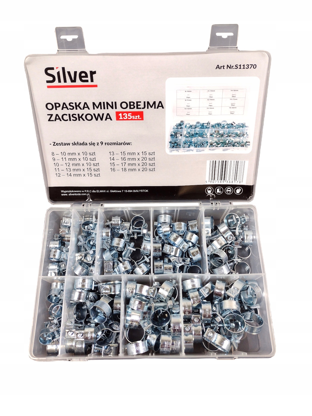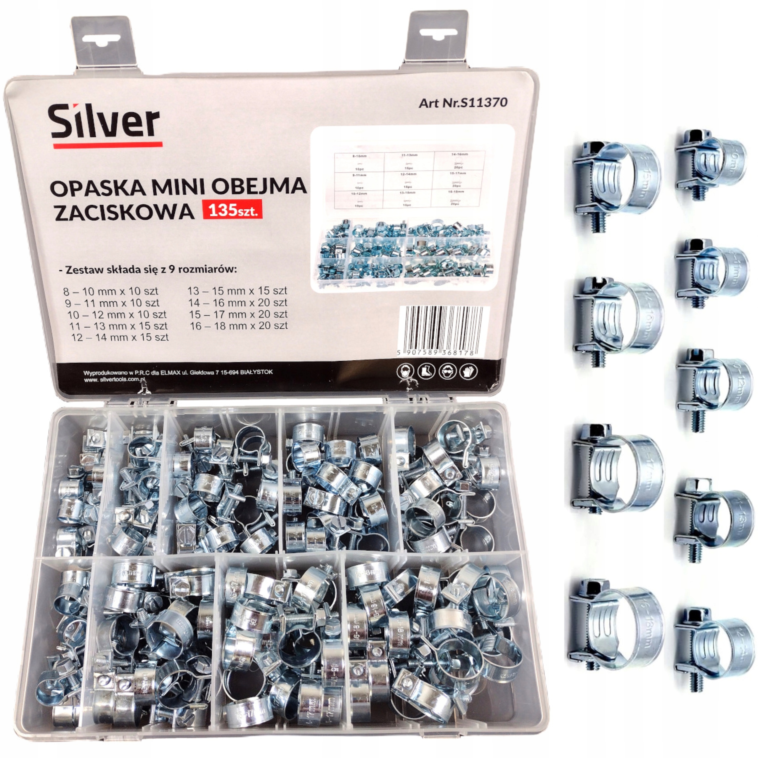 Професійний набір затискачів SilverTools - це набір з 135 елементів з широким діапазоном діаметрів - від 8 до 18 мм. Затискачі, виготовлені з високоякісної нержавіючої сталі, гарантують довговічність, стійкість до корозії та надійне, щільне з'єднання в будь-якій установці. Ідеально підходить для автомобільних, гідравлічних і пневматичних застосувань, а також для майстерень і технічних служб.
