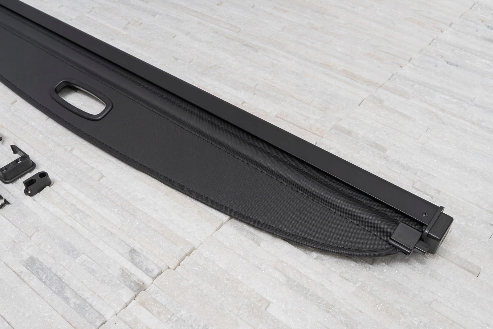 Використання складеної сліпої дозволяє захистити простір багажу від надмірного сонячного світла. Він також захищає вміст тулуба, тим самим зменшуючи ризик крадіжок всередині предметів. Елегантний чорний колір та естетика роблять сліпий ідеально гармонізуються зі стилем автомобіля. Обрізання завіси виготовляється з матеріалу, стійкого до пошкодження та знебарвлення, спричиненого сонячним світлом та змінами температури, завдяки якому продукт виглядає чудово тривалий час.