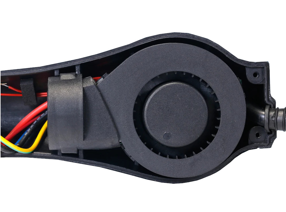 Колба з гарячим повітрям оснащена безщірним вентилятором з м'яким стартом і високою міцністю, що забезпечує дме живлення до 120 л/хв та високої надійності.