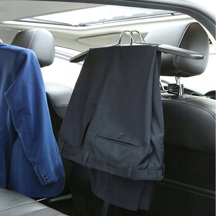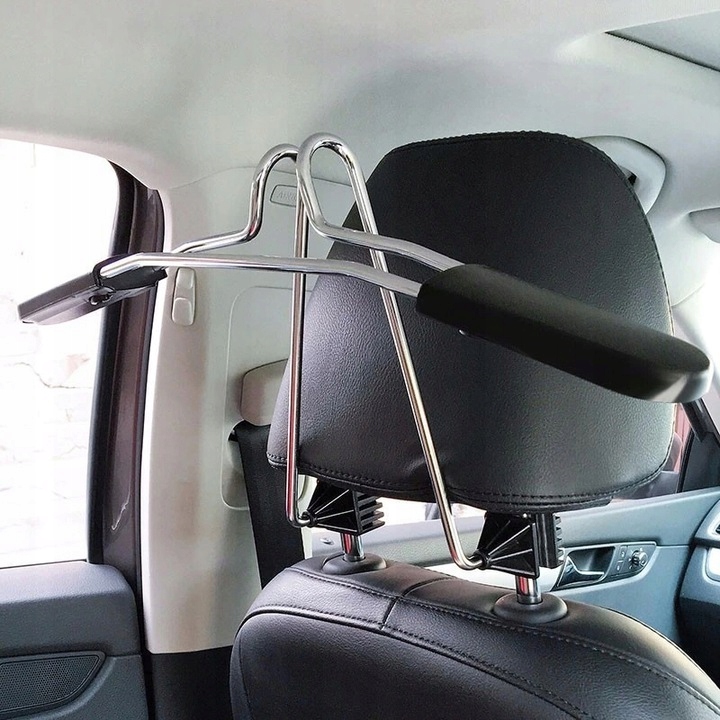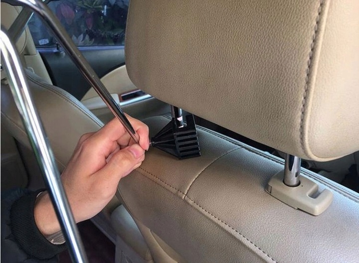 - Вішалка призначена для всіх типів автомобілів, обладнаних підголівником на двох ніжках. Дуже проста збірка - просто стисніть ніжки вішалки та просуньте її під підголівник.