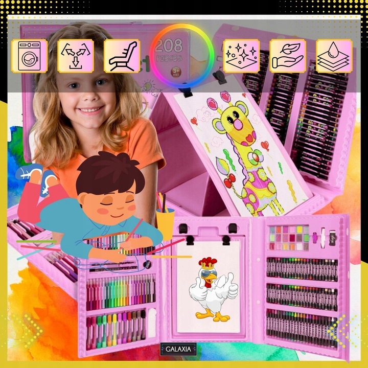✨ багатий вибір кольорів заохочує молодого художника експериментувати та розвивати свою творчість. Практичний Neseser легко підійде до всіх елементів набору та матиме складну панель, яку можна використовувати як підставку для фіксації карт.