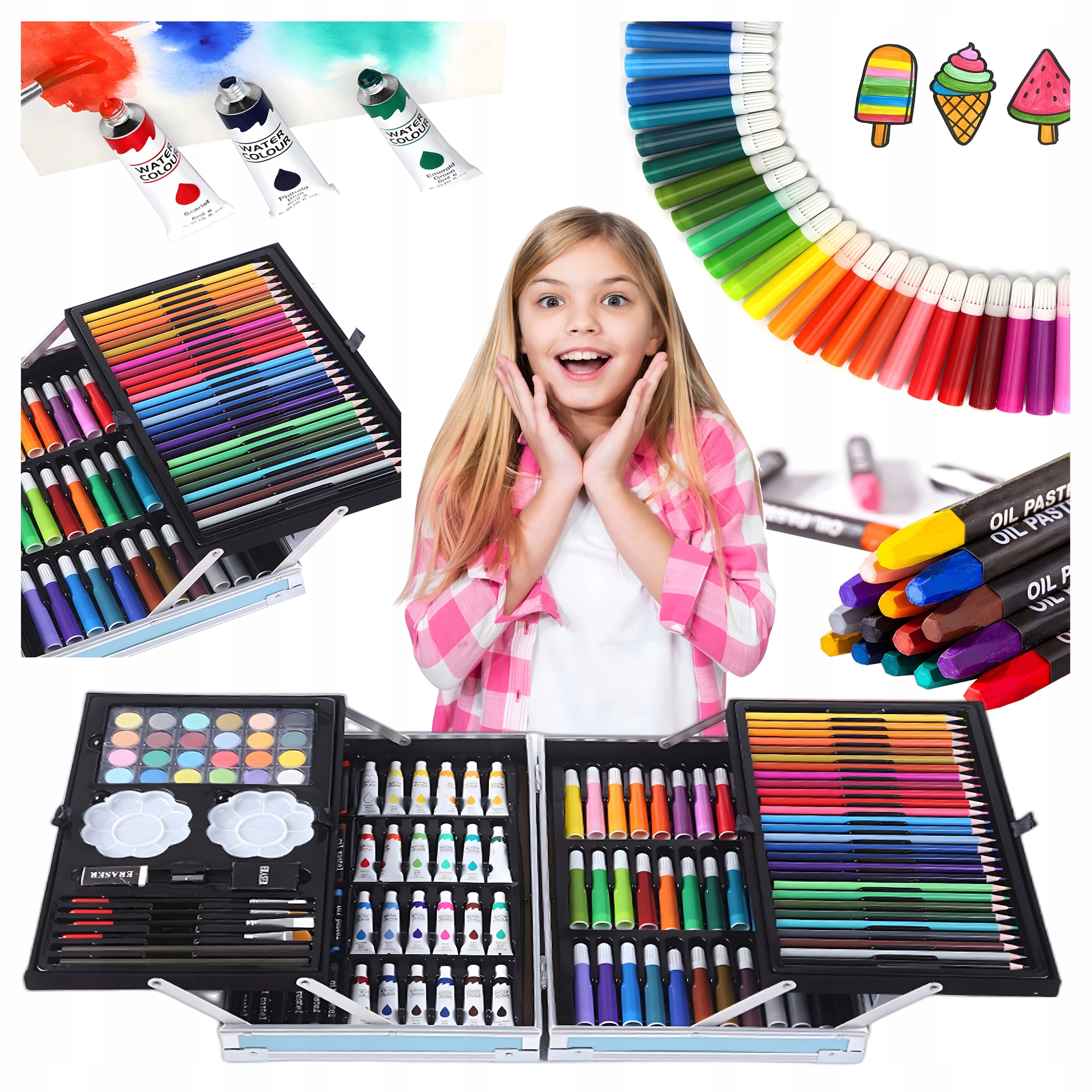 Високоякісні матеріали, використані для виготовлення набору, забезпечують яскраві кольори та довговічність. Алюмінієва валіза не тільки захищає вміст, але й полегшує організацію. Вибираючи цей набір, ви інвестуєте в художній розвиток вашої дитини та даєте їй інструмент для розвитку своєї пристрасті та уяви.